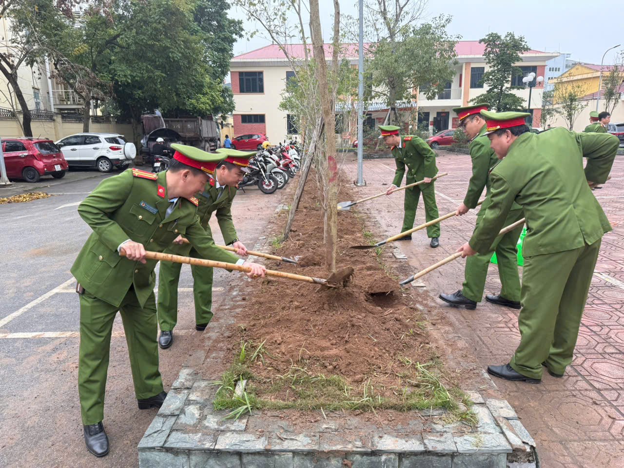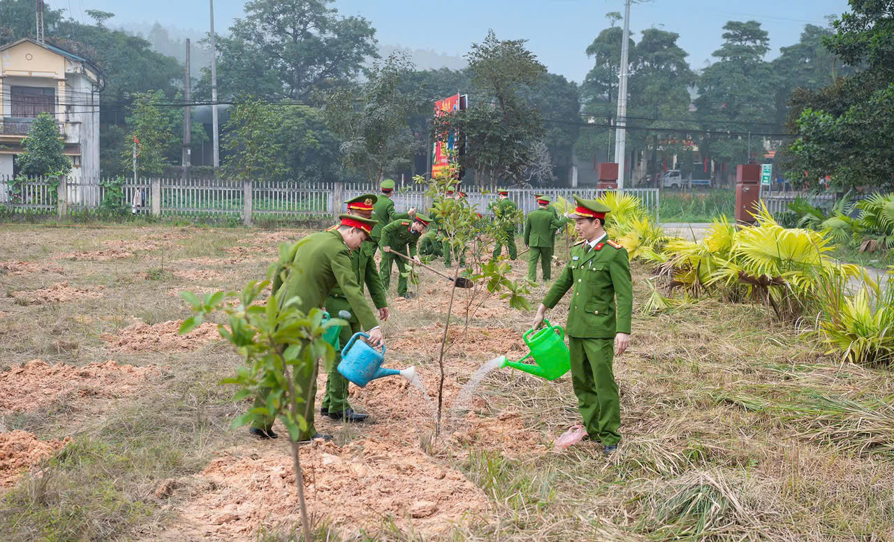 Thực hiện lời dạy của Chủ tịch Hồ Chí Minh: “Vì lợi ích mười năm trồng cây, vì lợi ích trăm năm trồng người”, ngày 23/02/2026, cán bộ, chiến sĩ Công an phường Phong Châu đã tham gia Lễ phát động “Tết trồng cây đời đời nhớ ơn Bác Hồ” nhân dịp Xuân Bính Ngọ 2026 tại khu vực chợ Phú Hà, khu 4, phường Phong Châu.