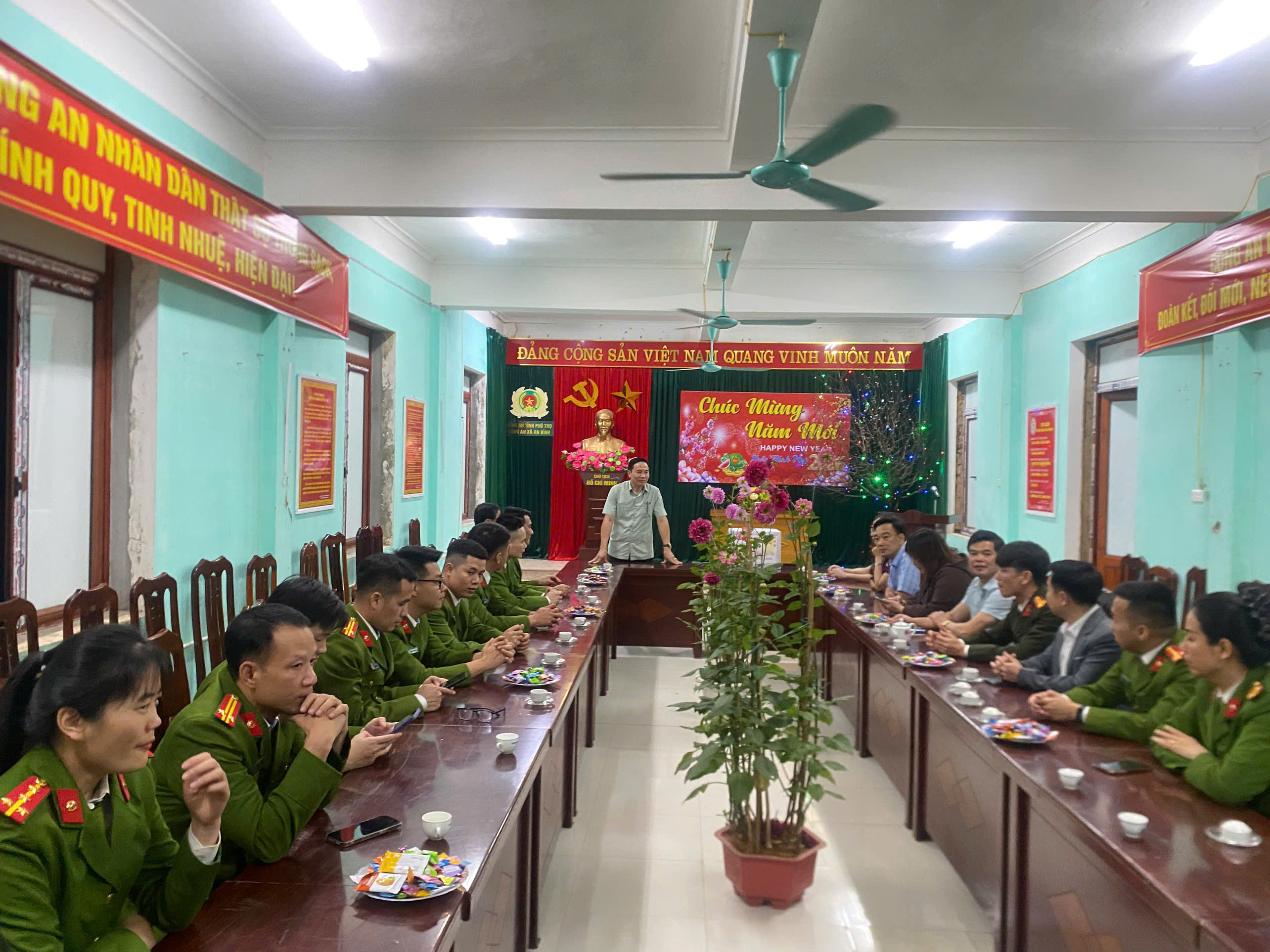 Tối ngày 16/02/2026 (tức 29/12 âm lịch), Đoàn lãnh đạo Đảng ủy, Hội đồng nhân dân, Ủy ban nhân dân xã An Bình do đồng chí Nguyễn Văn Bình - Bí thư Đảng ủy, Chủ tịch Hội đồng nhân dân xã làm Trưởng đoàn đã đến thăm, chúc Tết và giao nhiệm vụ cho lực lượng Công an xã An Bình nhân dịp Tết Nguyên đán Bính Ngọ.