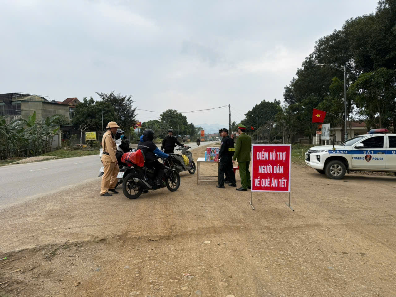 Trong những ngày giáp Tết nguyên đán Bính Ngọ 2026, Công an xã Yên Thủy đã phối hợp với lực lượng Cảnh sát giao thông Công an tỉnh triển khai điểm dừng chân, hỗ trợ thực phẩm và tuyên truyền an toàn giao thông cho người dân di chuyển qua địa bàn.