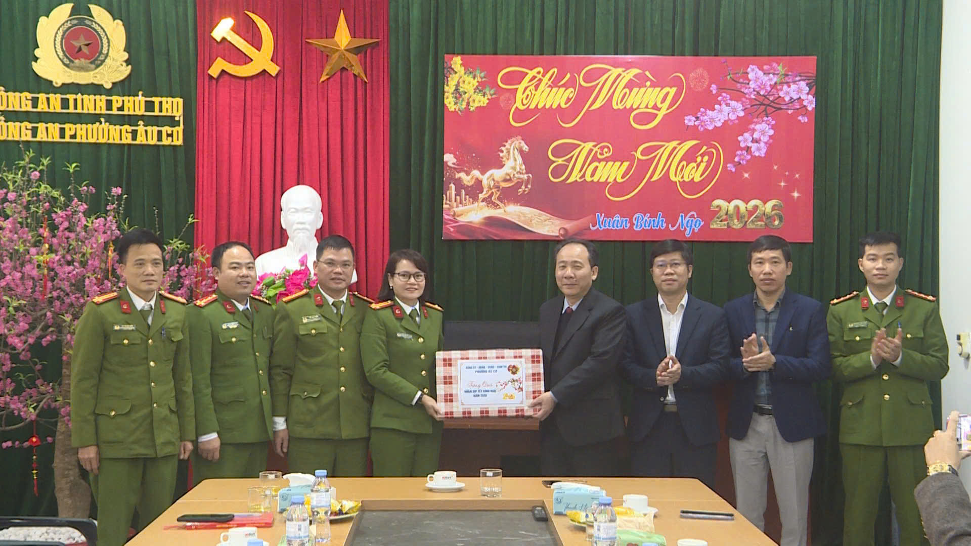Nhân dịp Tết Nguyên đán Bính Ngọ 2026, lãnh đạo Đảng ủy, HĐND, UBND, Ủy ban MTTQ Việt Nam phường Âu Cơ đã tổ chức thăm, chúc Tết và động viên cán bộ, chiến sĩ Công an phường, thể hiện sự quan tâm sâu sắc của cấp ủy, chính quyền đối với lực lượng trực tiếp giữ gìn an ninh trật tự tại cơ sở.