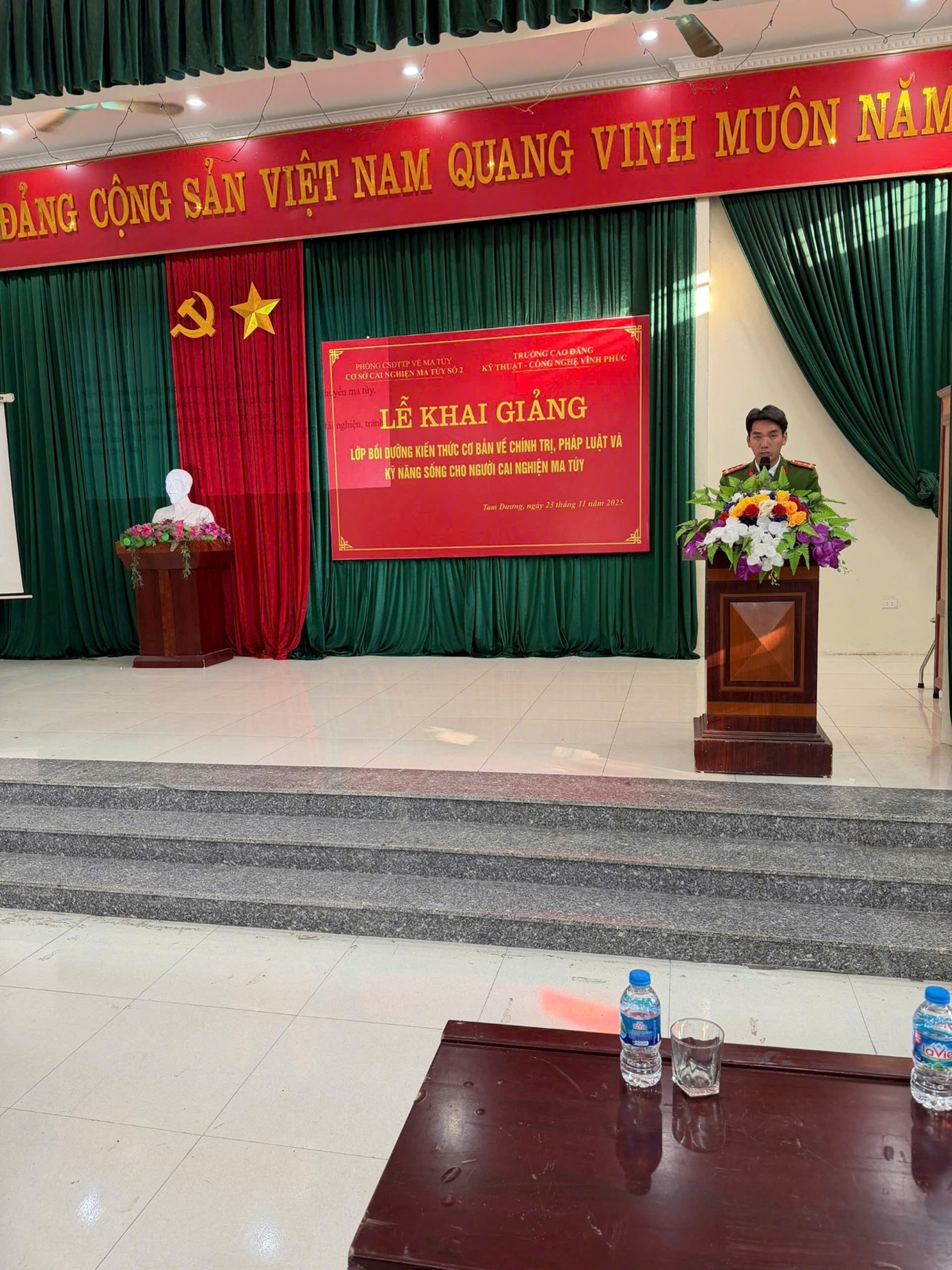 Thực hiện chỉ đạo của Bộ Công an, Công an tỉnh về đẩy mạnh công tác quản lý, giáo dục và hỗ trợ người cai nghiện hòa nhập cộng đồng, Cơ sở cai nghiện ma túy số 2 tỉnh Phú Thọ vừa tổ chức khai giảng lớp bồi dưỡng kiến thức chính trị, pháp luật và kỹ năng sống dành cho học viên đang tham gia cai nghiện. Đây là một trong những hoạt động thường xuyên nhằm nâng cao nhận thức, ý thức chấp hành pháp luật và tạo điều kiện để học viên củng cố kỹ năng cần thiết cho quá trình rèn luyện.