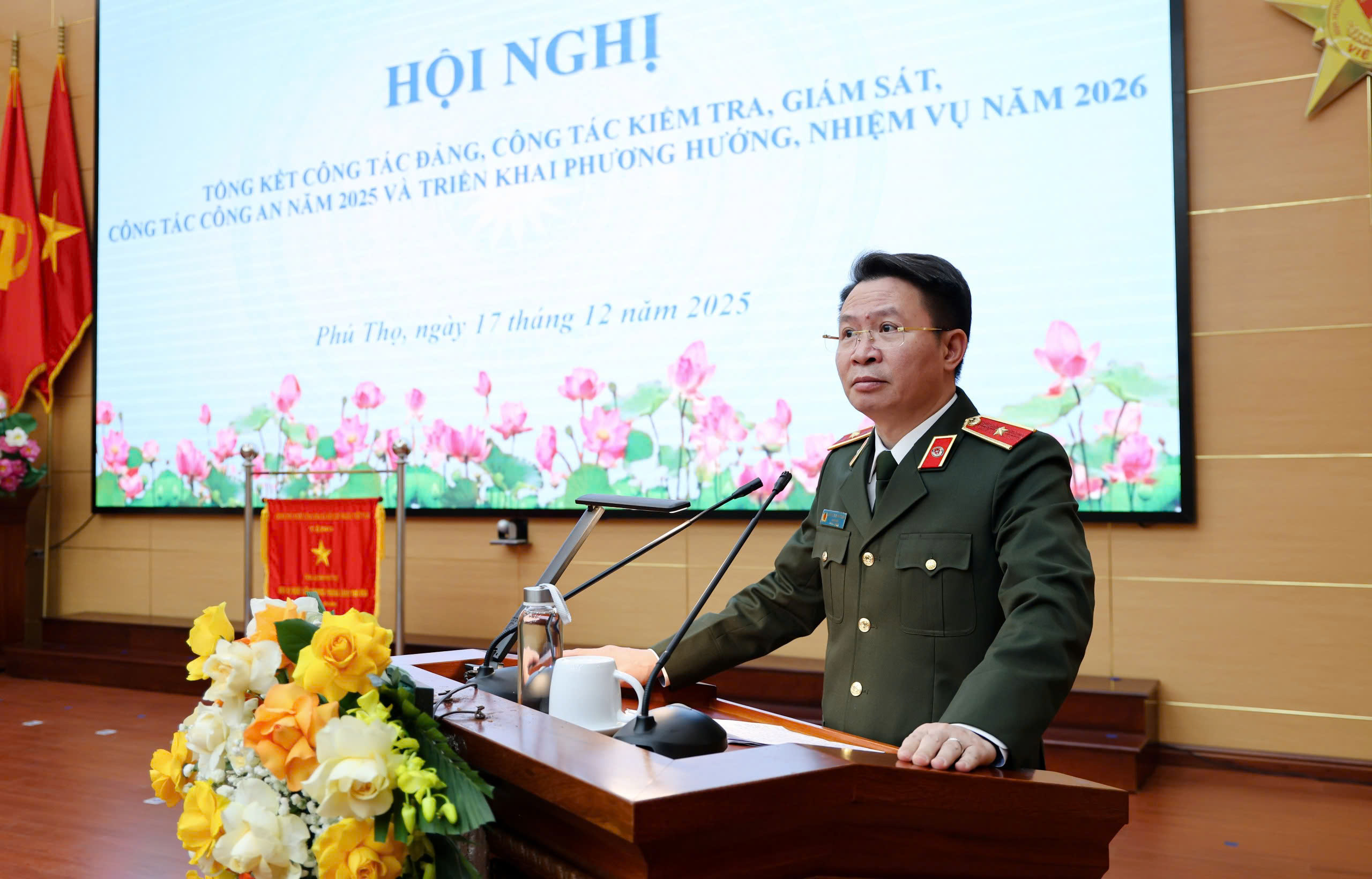 Sáng ngày 17/12/2025, Đảng bộ Công an tỉnh Phú Thọ tổ chức Hội nghị tổng kết công tác Đảng, công tác kiểm tra giám sát năm 2025, triển khai nhiệm vụ công tác năm 2026. Đồng chí Thiếu tướng Nguyễn Minh Tuấn - Ủy viên Ban Thường vụ Tỉnh ủy, Bí Thư Đảng ủy, Giám đốc Công an tỉnh chủ trì Hội nghị.