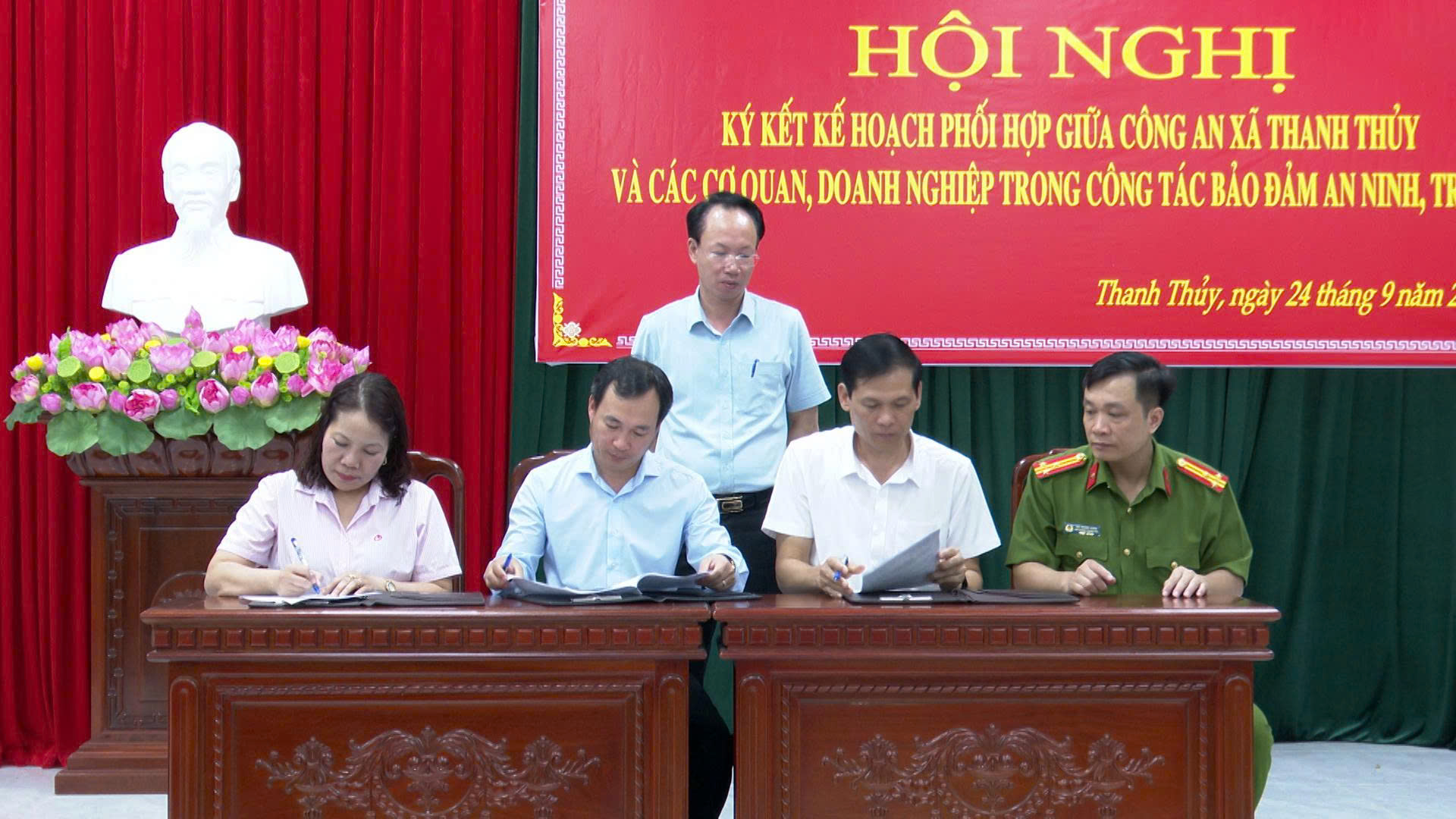 Vừa qua, Công an xã Thanh Thuỷ tổ chức Hội nghị ký kết kế hoạch phối hợp giữa Công an xã với các cơ quan, doanh nghiệp trong công tác bảo đảm an ninh, trật tự. Dự hội nghị có đại diện lãnh đạo chính quyền xã; Công an xã và đại điện lãnh đạo Trung tâm Y tế khu vực Thanh Thuỷ, các ngân hàng, phòng giao dịch, doanh nghiệp hoạt động trong lĩnh vực du lịch trên địa bàn xã.