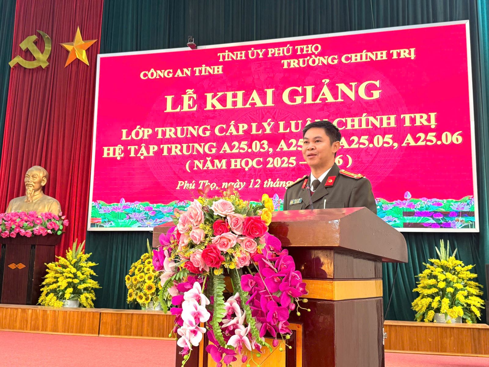 Sáng 12/01/2026, Công an tỉnh Phú Thọ phối hợp với Trường Chính trị tỉnh Phú Thọ tổ chức lễ khai giảng lớp đào tạo trung cấp lý luận chính trị hệ tập trung dành cho cán bộ, chiến sĩ Công an tỉnh.