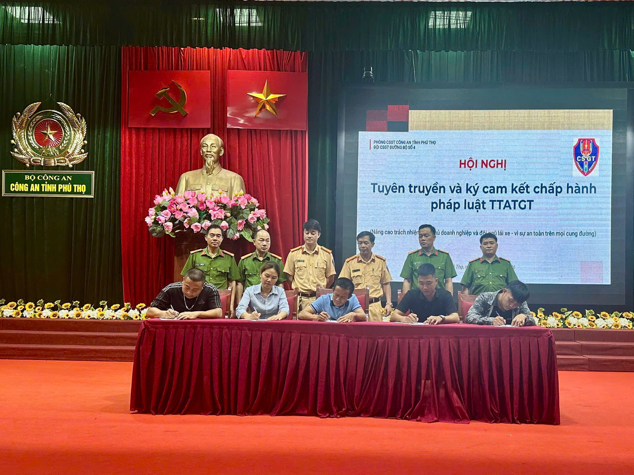 Thực hiện kế hoạch của Phòng Cảnh sát giao thông Công an tỉnh Phú Thọ về công tác tuyên truyền, phổ biến, giáo dục pháp luật và bảo đảm trật tự, an toàn giao thông năm 2026, ngày 28/4/2026, Đội CSGT đường bộ số 4 đã tổ chức hội nghị tuyên truyền, phổ biến pháp luật và ký cam kết chấp hành quy định về vận tải hàng hóa đối với các chủ cơ sở san hạ đất, mỏ khai thác đá, bến bãi tập kết vật liệu xây dựng và doanh nghiệp vận tải đường bộ trên địa bàn.
