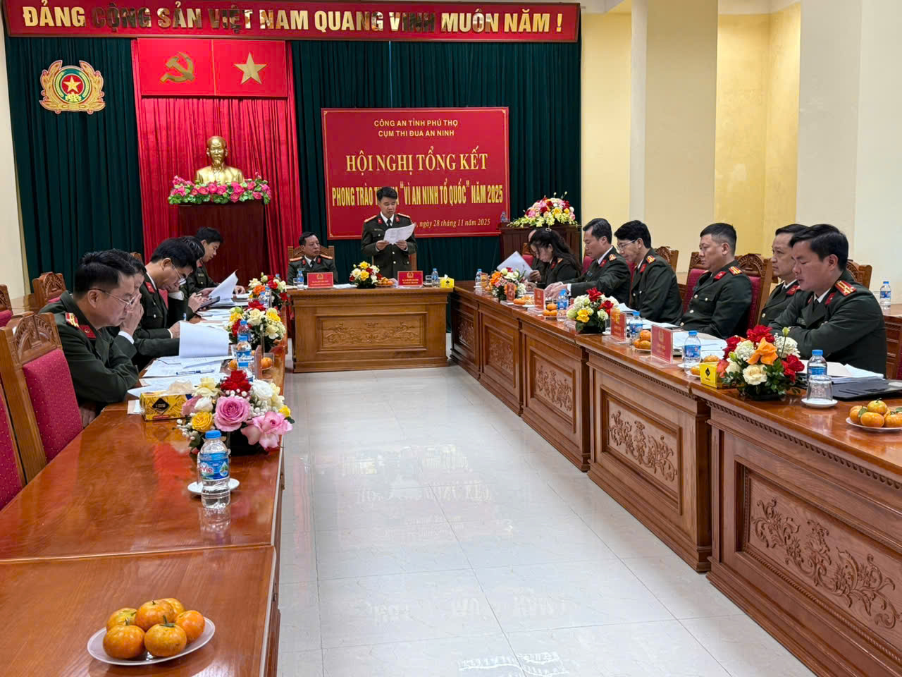 Sáng 27/11/2025, tại Công an tỉnh Phú Thọ, Cụm thi đua số 4 Bộ Công an tổ chức Hội nghị tổng kết phong trào thi đua Vì an ninh Tổ quốc năm 2025. Dự Hội nghị có đồng chí Phan Trọng Tấn, Ủy viên BTV Tỉnh ủy, Phó Chủ tịch UBND tỉnh Phú Thọ; Thiếu tướng Phạm Kim Đĩnh, Cục trưởng Cục Công tác chính trị, Bộ Công an; Thiếu tướng Nguyễn Minh Tuấn, Ủy viên BTV Tỉnh ủy, Bí thư Đảng ủy, Giám đốc Công an tỉnh Phú Thọ - Đơn vị Cụm trưởng; lãnh đạo các Cục nghiệp vụ, Bộ Công an; lãnh đạo Công an các tỉnh trong Cụm thi đua số 4 gồm: Phú Thọ, Quảng Ninh, Thái Nguyên, Bắc Ninh, Hưng Yên và Lạng Sơn; đại diện một số sở, ban, ngành của tỉnh Phú Thọ.