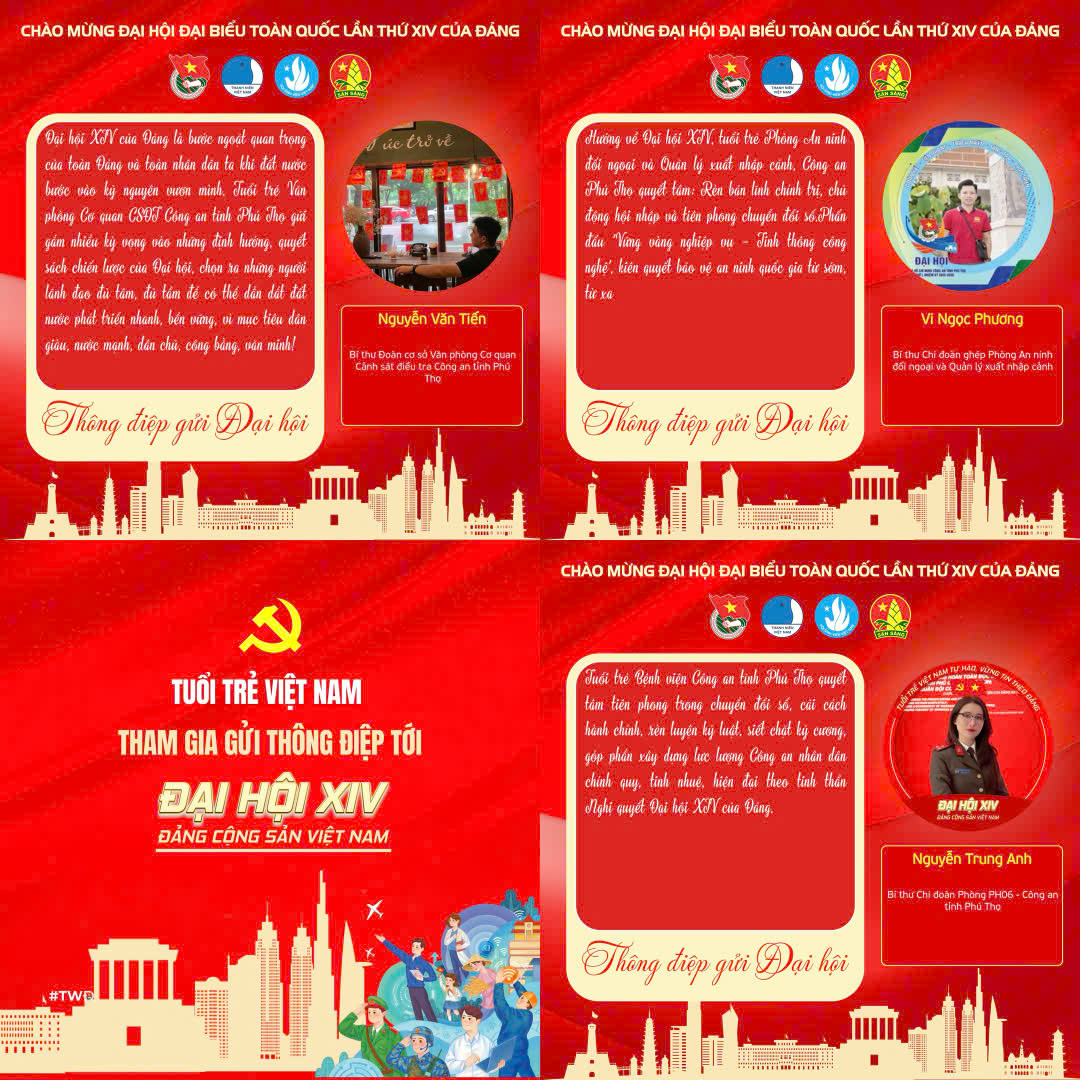 Hưởng ứng Chiến dịch “Gửi Thông điệp tới Đại hội đại biểu toàn quốc lần thứ XIV của Đảng” do Trung ương Đoàn TNCS Hồ Chí Minh phát động, đoàn viên, thanh niên Công an tỉnh Phú Thọ đã tích cực tham gia, gửi gắm những kỳ vọng, niềm tin và khát vọng cống hiến của tuổi trẻ lực lượng Công an nhân dân đối với Đại hội.