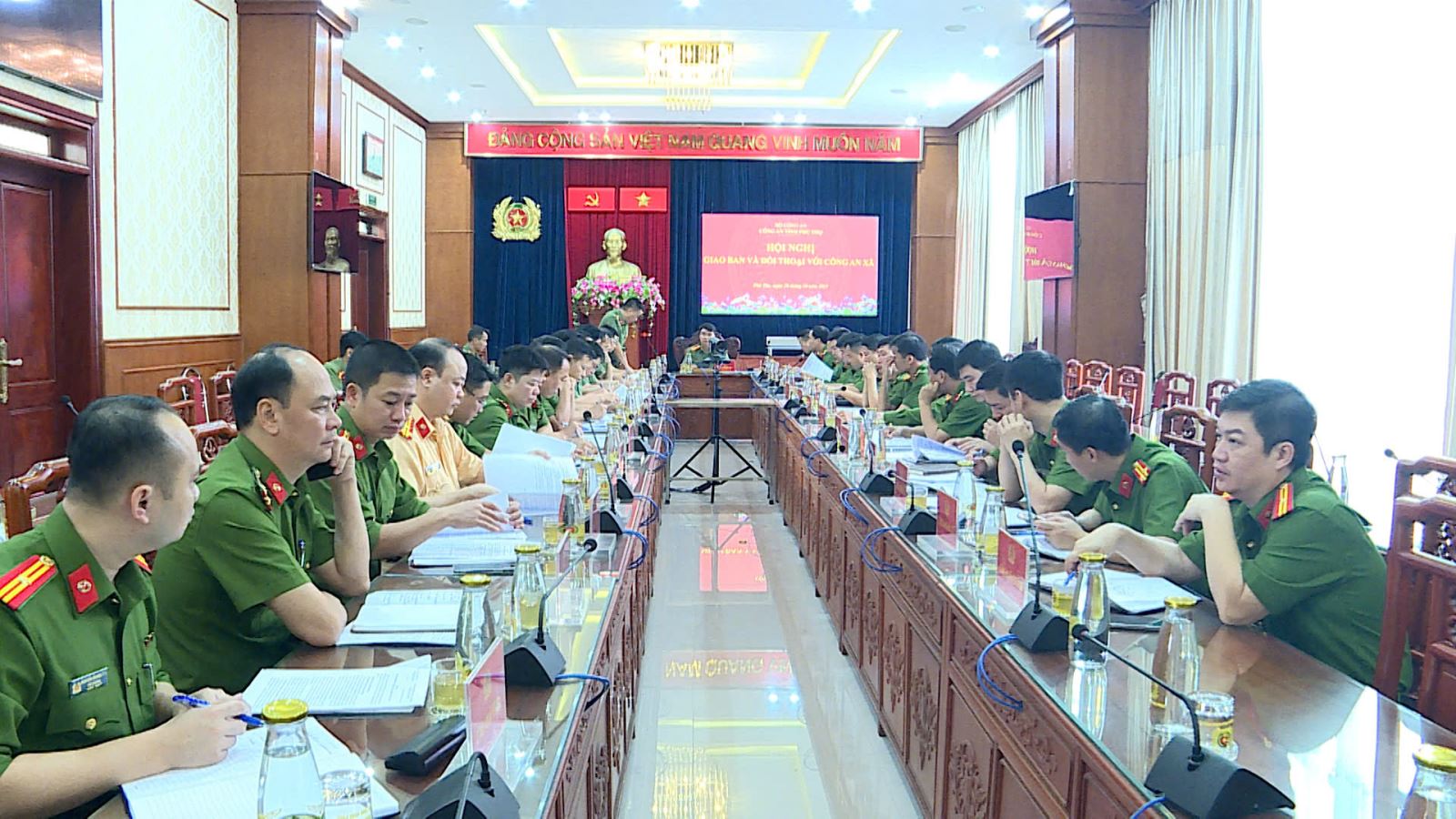 Sáng 28/10, tại trụ sở Công an tỉnh Phú Thọ (khu vực Vĩnh Phúc), Công an tỉnh tổ chức Hội nghị giao ban và đối thoại cụm Công an 19 xã gồm: Đoan Hùng; Tây Cốc; Chân Mộng; Chí Đám; Bằng Luân; Thanh Sơn; Võ Miếu; Văn Miếu; Cự Đồng; Hương Cần; Yên Sơn; Khả Cửu; Tam Sơn; Sông Lô; Hải Lựu; Yên Lãng; Yên Thủy; Lạc Lương; Yên Trị. Đại tá Nguyễn Văn Công– Phó Giám đốc Công an tỉnh dự và chủ trì hội nghị. Tham dự còn có đại diện lãnh đạo các phòng nghiệp vụ Công an tỉnh cùng chỉ huy Công an 19 xã.