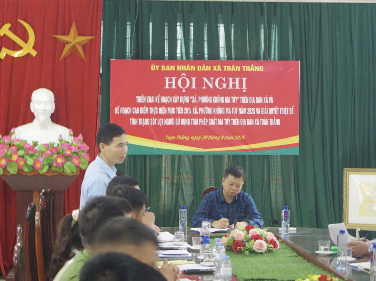Ngày 28/8/2025, Xã Toàn Thắng tổ chức Hội nghị triển khai Kế hoạch xây dựng xã phường không ma túy giai đoạn 2025 - 2030, cao điểm thực hiện mục tiêu 20% xã, phường không ma túy” năm 2025 và giải quyết triệt để tình trạng sót lọt người sử dụng trái phép chất ma túy trên địa bàn xã Toàn Thắng. Dự chỉ đạo hội nghị có đồng chí Nguyễn Vũ Hùng, Phó Bí thư Đảng ủy, Chủ tịch UBND xã.