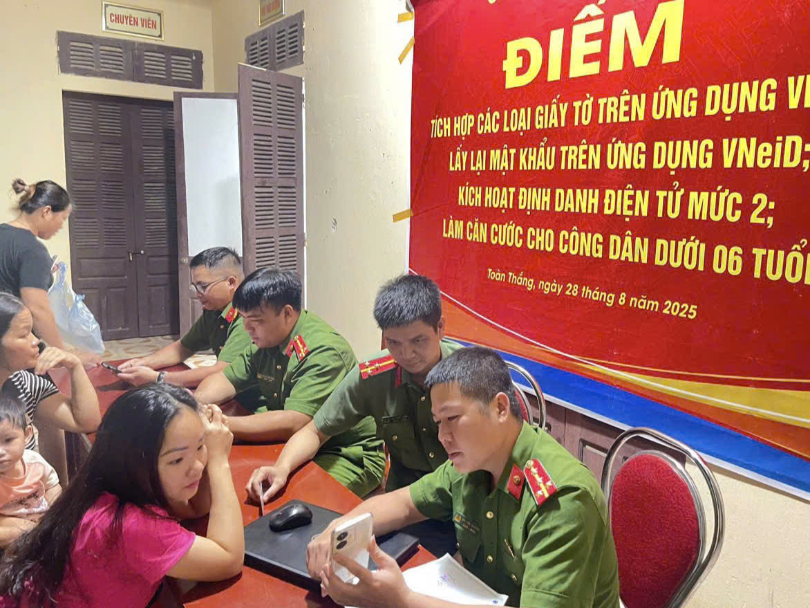 Nhằm tạo thuận lợi cho người dân trong việc làm thủ tục cấp căn cước công dân, định danh điện tử và tích hợp các loại giấy tờ trên ứng dụng VNeID. Ngày 22/8/2025, Công an xã Toàn Thắng, tỉnh Phú Thọ tổ chức điểm lưu động cấp căn cước công dân và cấp lại giấy tờ cá nhân cho trẻ em dưới 6 tuổi.