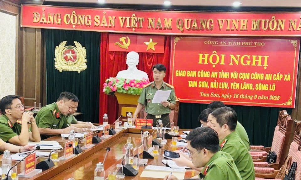 Sáng 18/9, tại trụ sở Công an xã Tam Sơn, Công an tỉnh Phú Thọ tổ chức Hội nghị giao ban Cụm Công an cấp xã gồm: Tam Sơn, Hải Lựu, Sông Lô, Yên Lãng. Đại tá Nguyễn Văn Công, Phó Giám đốc Công an tỉnh chủ trì hội nghị, cùng dự có lãnh đạo các phòng chức năng Công an tỉnh.