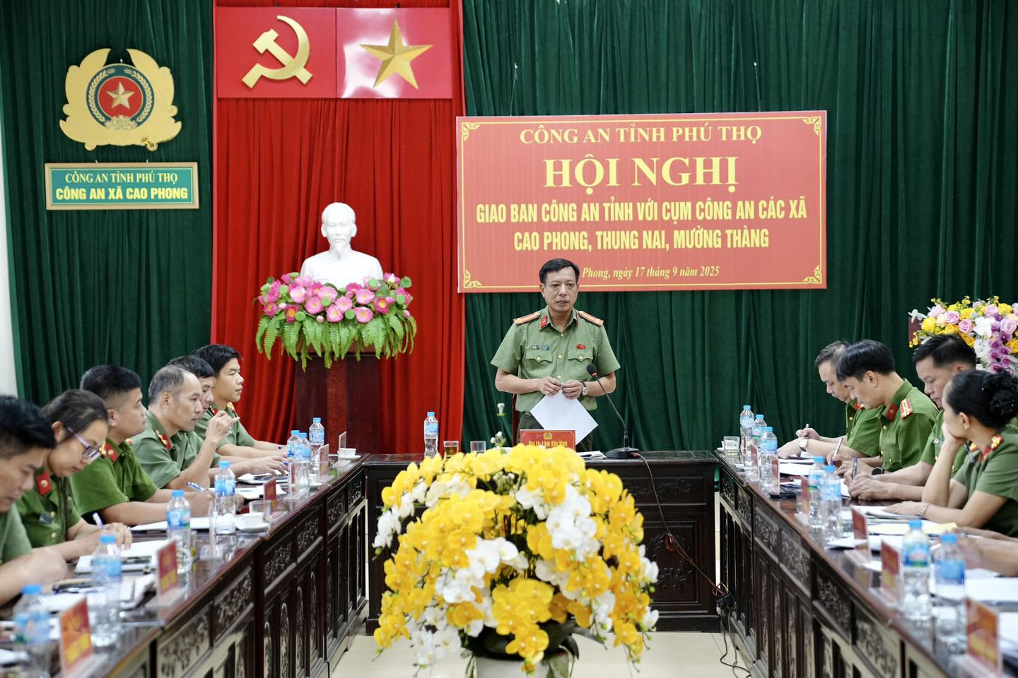 Sáng 17/9, tại trụ sở Công an xã Cao Phong, Công an tỉnh Phú Thọ tổ chức Hội nghị làm việc với Công an các xã Cao Phong, Mường Thàng, Thung Nai. Đại tá Lâm Văn Vinh – Phó Giám đốc Công an tỉnh dự và chủ trì hội nghị. Cùng tham dự có đại diện lãnh đạo các phòng nghiệp vụ Công an tỉnh và chỉ huy Công an 3 xã.