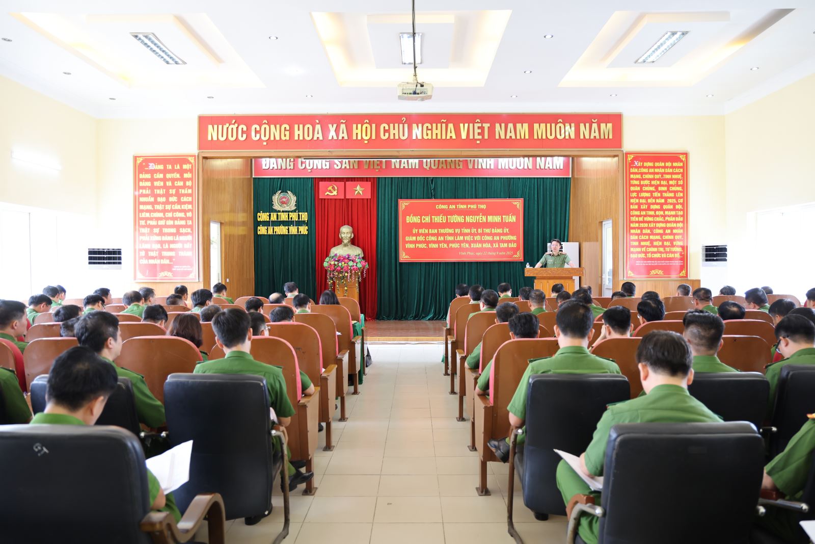 Chiều 22/9/2025, Thiếu tướng Nguyễn Minh Tuấn, Ủy viên Ban Thường vụ Tỉnh ủy, Bí thư Đảng ủy, Giám đốc Công an tỉnh Phú Thọ đã có buổi làm việc với Công an các phường, xã tại địa bàn tỉnh Vĩnh Phúc cũ. Cùng dự có đại diện lãnh đạo các phòng chức năng Công an tỉnh. Tại buổi làm việc, Thiếu tướng Nguyễn Minh Tuấn, Giám đốc Công an tỉnh đã có nhiều chỉ đạo quan trọng cũng như định hướng nhiều nội dung giúp công an các xã, phường tháo gỡ khó khăn, nâng cao chất lượng, hiệu quả hoạt động của lực lượng Công an cơ sở.
