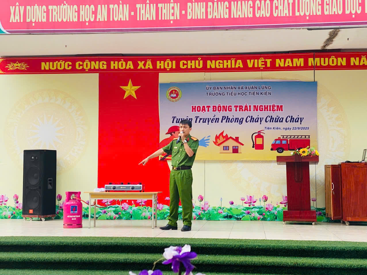 Ngày 22/9/2025, Công an xã Xuân Lũng đã phối hợp với Trường Tiểu học Tiên Kiên tổ chức chương trình trải nghiệm thực hành phòng cháy, chữa cháy và cứu nạn, cứu hộ cho gần 600 cán bộ, giáo viên và học sinh nhà trường.