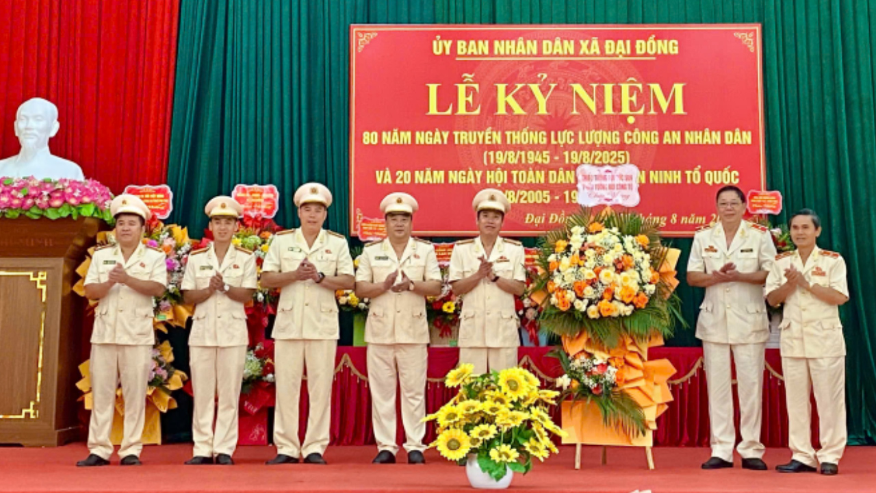Ngày 18/8/2025, Đảng ủy, HĐND, UBND, Ủy ban MTTQ Việt Nam xã Đại Đồng, tỉnh Phú Thọ long trọng tổ chức Lễ kỷ niệm 80 năm Ngày truyền thống Công an nhân dân Việt Nam (19/8/1945 - 19/8/2025) và 20 năm Ngày hội toàn dân bảo vệ an ninh Tổ quốc (19/8/2005 - 19/8/2025). Dự lễ kỷ niệm có đồng chí Thiếu tướng Bùi Đức Sòn, nguyên Ủy viên Ban Thường vụ Tỉnh ủy, nguyên Giám đốc Công an tỉnh Hòa Bình; đồng chí Thiếu tướng Bùi Công Tộ, nguyên Phó Tư lệnh Bộ Tư lệnh Cảnh vệ, Bộ Công an; lãnh đạo một số phòng nghiệp vụ Công an tỉnh, nguyên lãnh đạo Công an các cấp, đại diện Hội Cựu Công an nhân dân xã, các cơ quan, ban, ngành, đoàn thể, doanh nghiệp cùng đông đảo Nhân dân địa phương.
