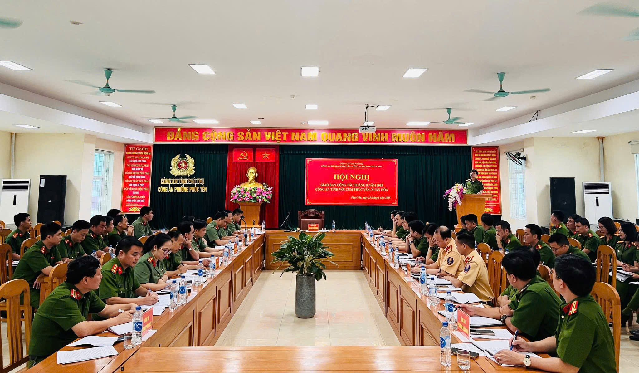 Chiều 25/8, tại Công an phường Phúc Yên, đồng chí Đại tá Hoàng Nguyễn Phi Khanh - Ủy viên Ban Thường vụ Đảng ủy, Phó Giám đốc Công an tỉnh chủ trì Hội nghị giao ban công tác tháng 8/2025 của Cụm Công an phường Phúc Yên, Xuân Hòa.