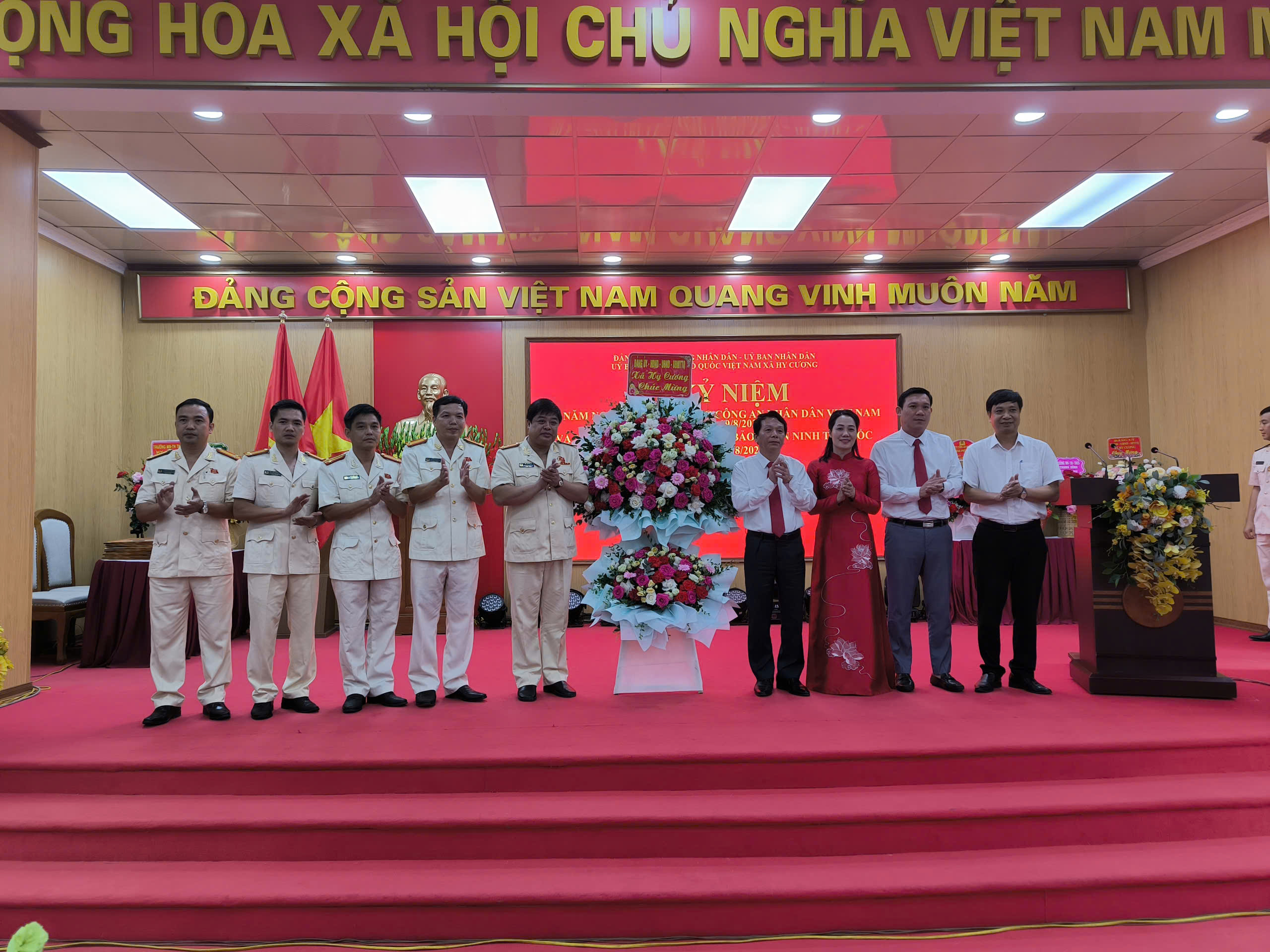 Chiều ngày 18/8/2025, UBND xã Hy Cương long trọng tổ chức Lễ kỷ niệm 80 năm Ngày truyền thống Công an nhân dân Việt Nam (19/8/1945 - 19/8/2025) và 20 năm Ngày hội Toàn dân bảo vệ an ninh Tổ quốc (19/8/2005 - 19/8/2025). Dự buổi lễ có các đồng chí trong Thường trực Đảng uỷ, Ban Thường vụ, Ban Chấp hành Đảng bộ xã Hy Cương; lãnh dạo một số phòng chức năng Công an tỉnh; đại diện Hội Cựu Công an nhân dân tỉnh Phú Thọ, Hội Cựu Công an nhân dân xã Hy Cương; các đồng chí Bí thư, Trưởng khu dân cư; lực lượng an ninh trật tự cơ sở; Chỉ huy, cán bộ Công an xã Hy Cương cùng các tập thể, cá nhân điển hình tiên tiến trong phong trào Toàn dân bảo vệ an ninh Tổ quốc năm 2025.