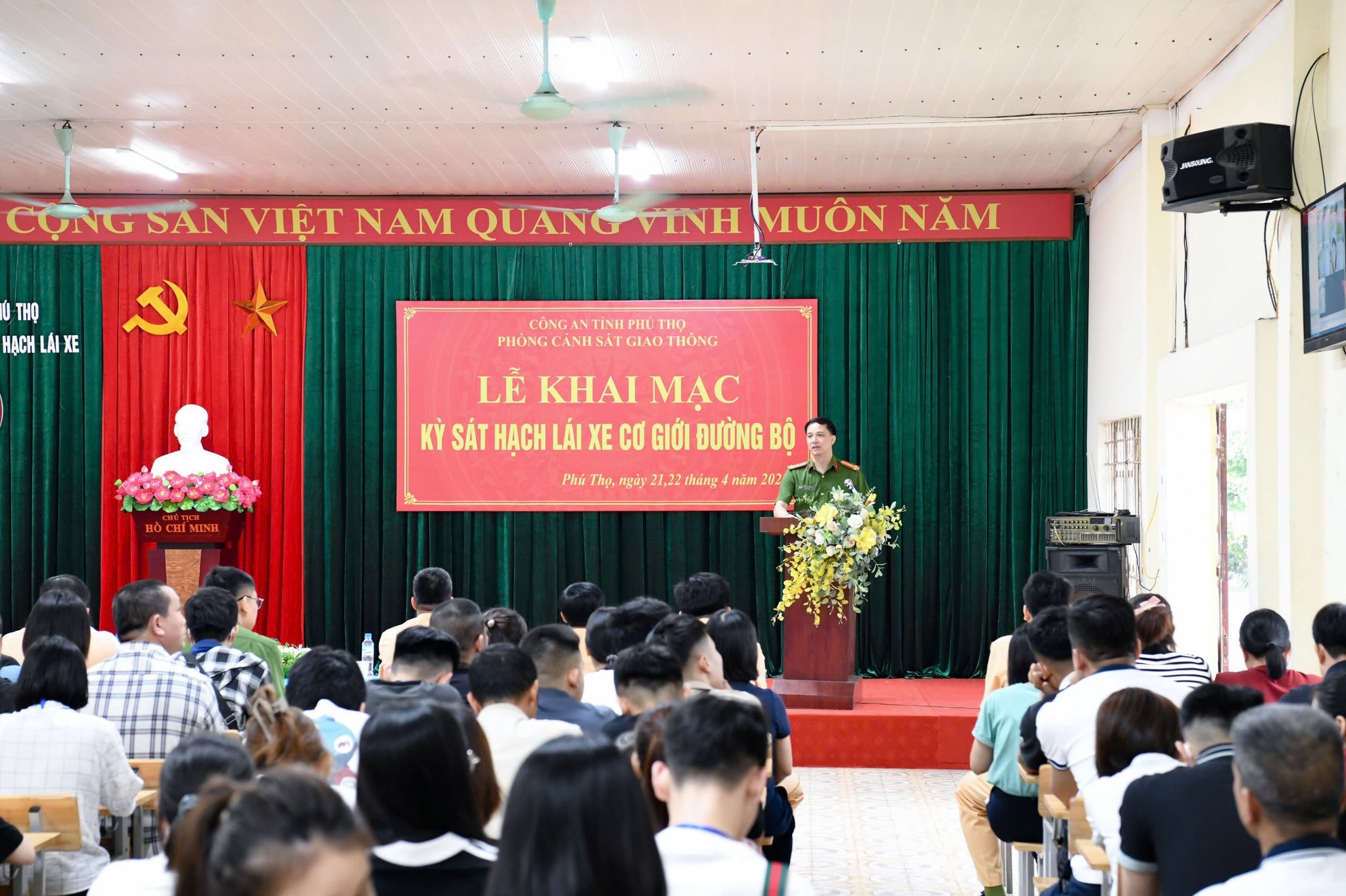 Sáng 21/4, Công an tỉnh Phú Thọ đã khai mạc kỳ sát hạch, cấp Giấy phép lái xe ô tô, mô tô. Đây là kỳ sát hạch, cấp Giấy phép lái xe đầu tiên kể từ khi tiếp nhận chức năng, nhiệm vụ này từ Sở Giao thông vận tải. Dự và chỉ đạo buổi lễ có đồng chí Thượng tá Nguyễn Xuân Trung - Phó Bí thư Đảng ủy, Phó Giám đốc Công an tỉnh. Cùng dự có đại diện lãnh đạo Trung tâm đào tạo và sát hạch lái xe Phú Thọ.