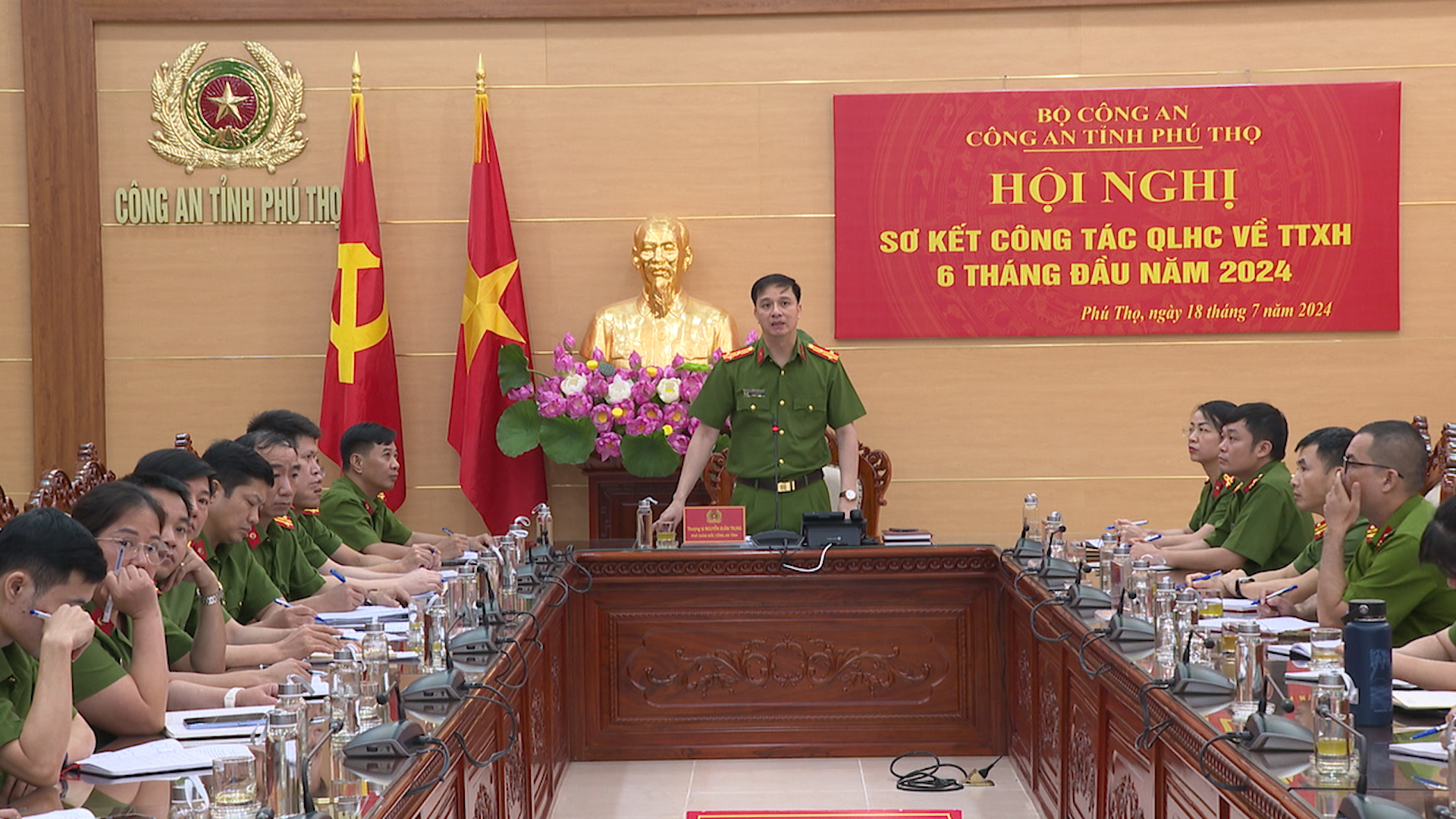 Ngày 18/7, tại Hà Nội, Cục Cảnh sát quản lý hành chính về trật tự xã hội (QLHC về TTXH) – Bộ Công an đã tổ chức Hội nghị sơ kết công tác QLHC về TTXH 6 tháng đầu năm 2024 theo hình thức trực tuyến tới Công an các địa phương. Thiếu tướng Nguyễn Ngọc Cương, Cục trưởng Cục Cảnh sát QLHC về TTXH chủ trì Hội nghị. Tại điểm cầu Công an tỉnh Phú Thọ, đồng chí Thượng tá Nguyễn Xuân Trung – Phó Giám đốc Công an tỉnh chủ trì hội nghị, hội nghị được trực tuyến tới điểm cầu 13 công an các huyện, thành phố, thị xã.