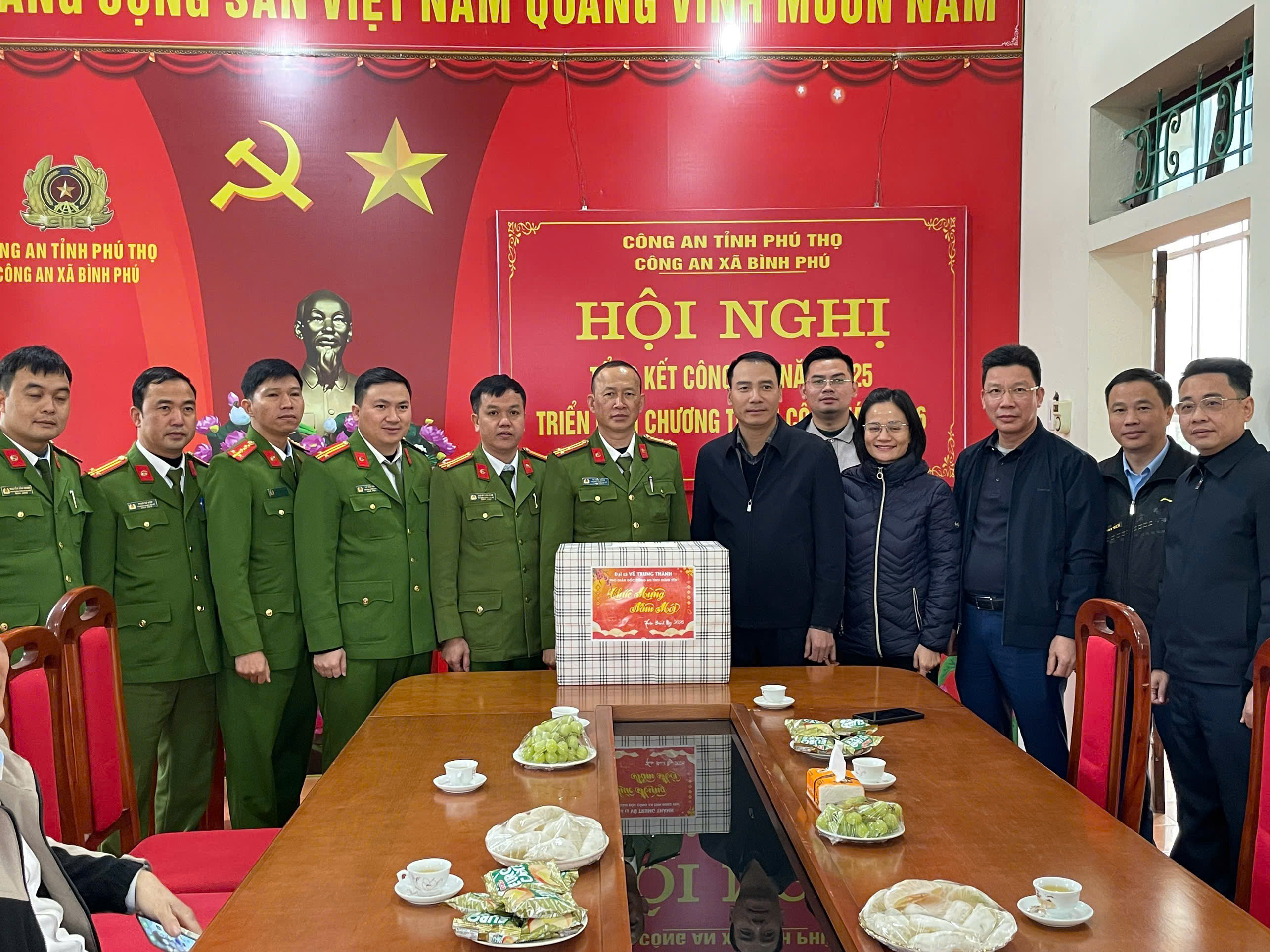 Trong không khí phấn khởi chuẩn bị đón Tết Nguyên đán Bính Ngọ năm 2026, sáng ngày 23/01/2026, tại trụ sở Công an xã Bình Phú, tỉnh Phú Thọ, đồng chí Đại tá Vũ Trung Thành, Ủy viên Ban Thường vụ Đảng ủy, Phó Giám đốc Công an tỉnh Hưng Yên đã đến thăm, động viên và chúc Tết cán bộ, chiến sĩ Công an xã Bình Phú.