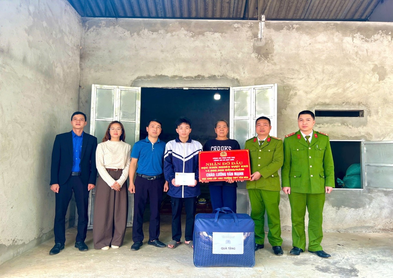 Hưởng ứng phong trào thi đua chào mừng Đại hội đại biểu toàn quốc lần thứ XIV của Đảng và chiến dịch Tình nguyện mùa đông 2025 – Xuân tình nguyện 2026, ngày 23/01/2026, Phòng Tham mưu Công an tỉnh Phú Thọ chủ trì, phối hợp với Ngân hàng TMCP Việt Nam – Chi nhánh Vĩnh Phúc và Công an xã Tam Dương Bắc tổ chức chương trình “Đồng hành cùng các em tới trường”, trao học bổng cho học sinh nghèo vượt khó tại Trường THCS Hoàng Hoa, xã Tam Dương Bắc.