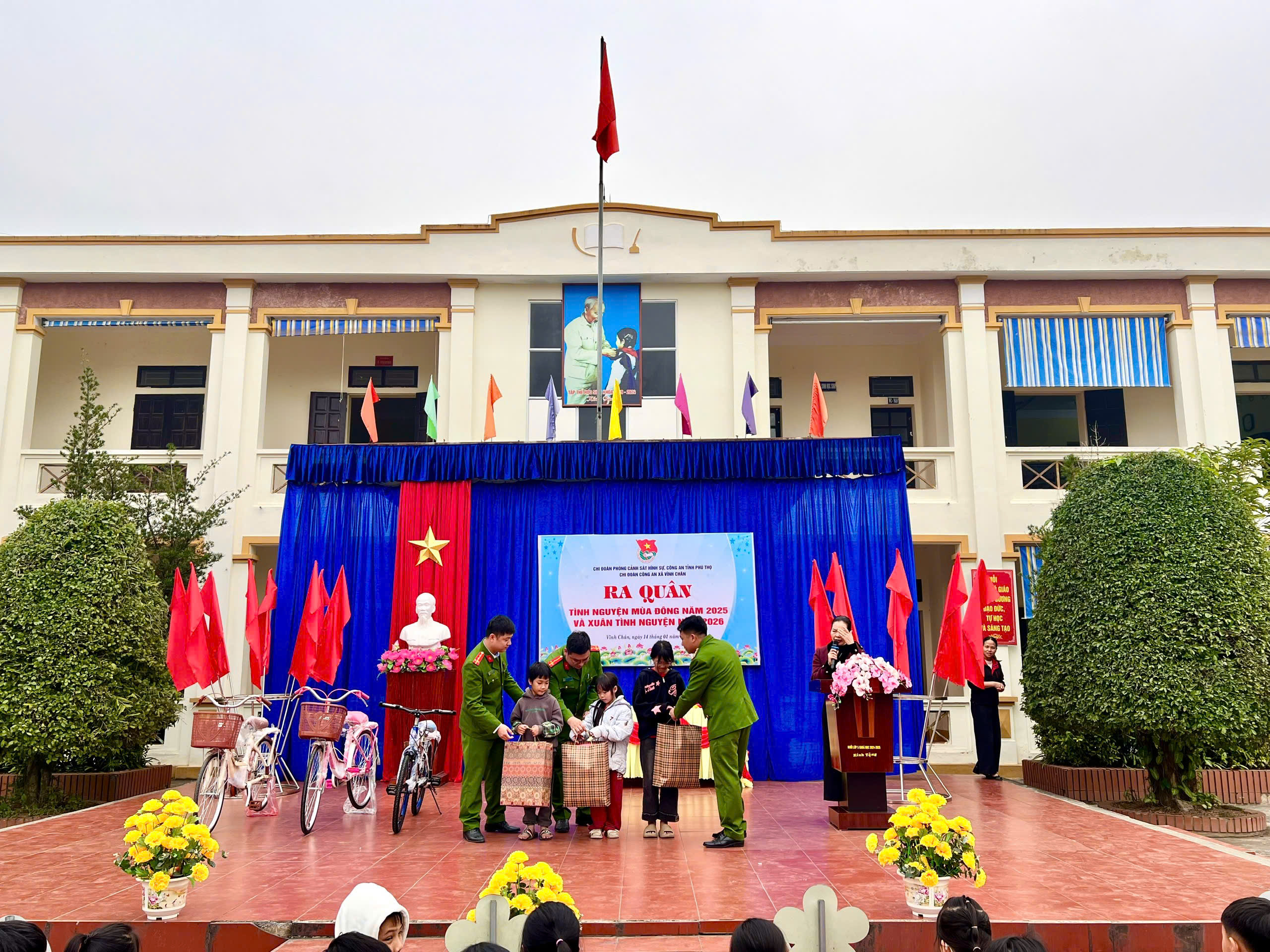 Trong khuôn khổ Chương trình “Tình nguyện mùa đông 2025 - Xuân tình nguyện 2026”, sáng ngày 14/01/2026, Đoàn Thanh niên Phòng Cảnh sát hình sự Công an tỉnh Phú Thọ đã chủ trì, phối hợp với Công an các xã Sơn Lương, Vĩnh Chân và Bằng Luân tổ chức hoạt động tặng quà cho các em học sinh có hoàn cảnh đặc biệt khó khăn nhưng đạt thành tích cao trong học tập trên địa bàn.
