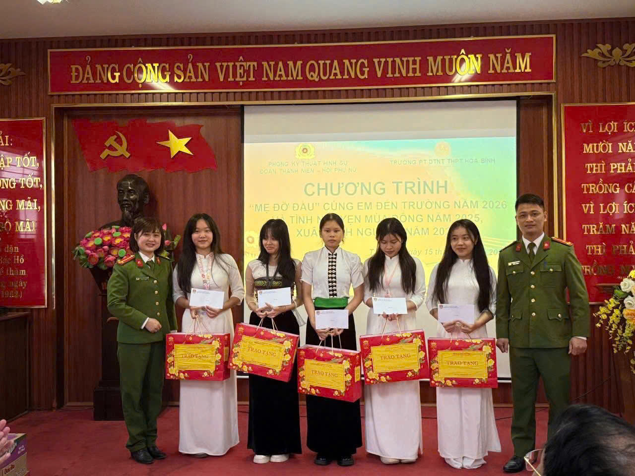 Thực hiện các kế hoạch của Công an tỉnh Phú Thọ hưởng ứng phong trào thi đua “Ba nhất”, Chương trình “Mẹ đỡ đầu” và phong trào “Tình nguyện mùa đông 2025 – Xuân tình nguyện 2026”, Phòng Kỹ thuật hình sự Công an tỉnh đã tổ chức chương trình “Mẹ đỡ đầu, cùng em đến trường” tại Trường Phổ thông Dân tộc Nội trú THPT Hòa Bình.