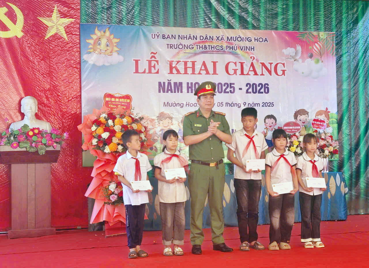 Thực hiện chủ trương “Giáo dục là quốc sách hàng đầu, an ninh là điều kiện phát triển”, từ dịp Ngày toàn dân đưa trẻ đến trường (5/9/2025) đến nay, Công an xã Mường Hoa đã triển khai hiệu quả chương trình “Cổng trường bình yên - Em tới lớp an toàn” tại tất cả các cơ sở giáo dục trên địa bàn. Những hình ảnh các cán bộ, chiến sĩ Công an xã trao quà khuyến học cho học sinh mầm non, tiểu học và trung học cơ sở trong lễ khai giảng chỉ là khởi đầu cho chuỗi hoạt động thiết thực, góp phần đảm bảo an ninh, an toàn trường học trong năm học 2025-2026.