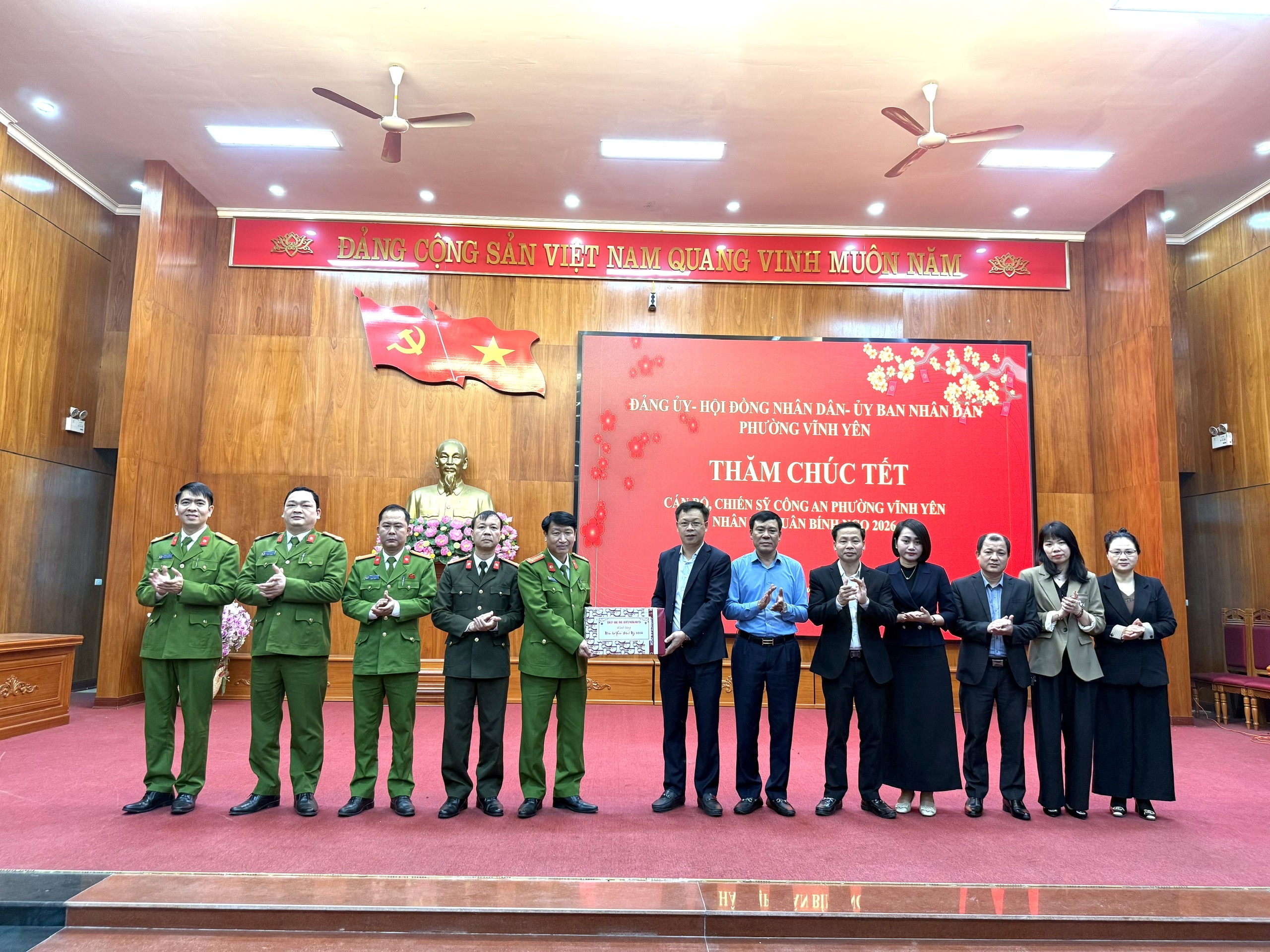 Trong không khí chuẩn bị đón Tết Nguyên đán Bính Ngọ 2026, cấp ủy, chính quyền phường Vĩnh Yên đã đến thăm, động viên cán bộ, chiến sĩ Công an phường đang thực hiện nhiệm vụ bảo đảm an ninh, trật tự trên địa bàn.