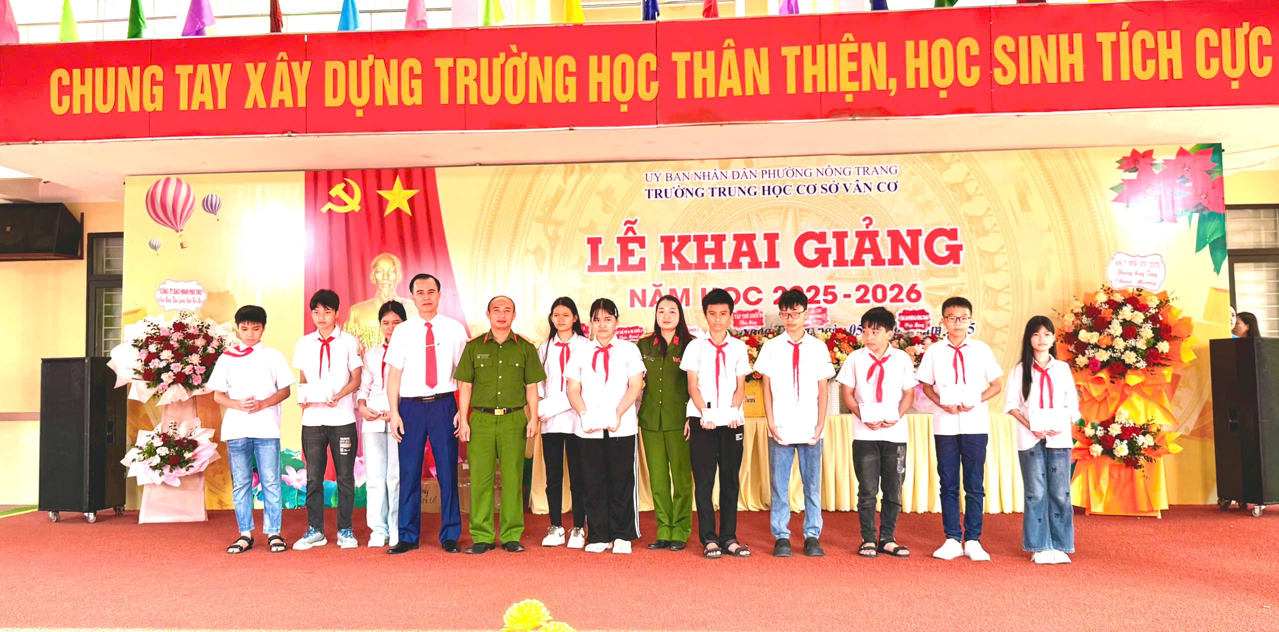 Hòa trong không khí tưng bừng ngày tựu trường và tổ chức các hoạt động chăm lo cho trẻ em mồ côi, trẻ em có hoàn cảnh khó khăn nhân dịp khai giảng năm học mới trên địa bàn tỉnh. Sáng ngày 5/9/2025, Đoàn thanh niên, hội phụ nữ cơ sở phòng Kỹ thuật hình sự đã tham mưu cấp uỷ lãnh đạo đơn vị tổ chức tặng 10 phần quà, mỗi phần quà 500.000 đồng cho các em học sinh có hoàn cảnh khó khăn vươn lên trong học tập tại trường Trung học Cơ sở Vân Cơ, phường Nông Trang, tỉnh Phú Thọ.