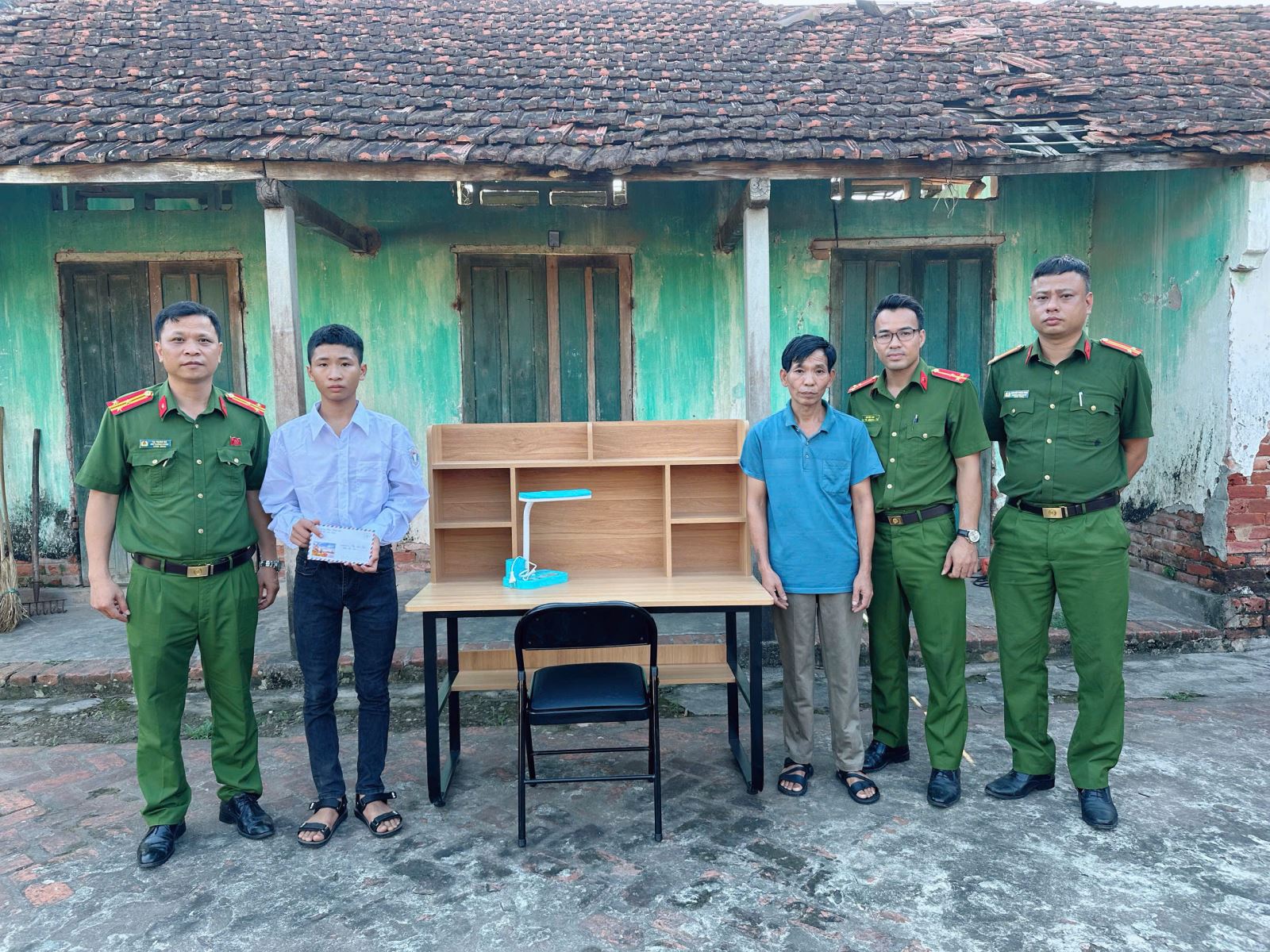 Ngày 8/9, Công an xã Liên Minh đã trao tặng bộ bàn học và đèn học mới cho em Lê Xuân Tuấn, SN 2010, khu Đỗ Sơn 2, xã Liên Minh là học sinh có hoàn cảnh đặc biệt khó khăn.