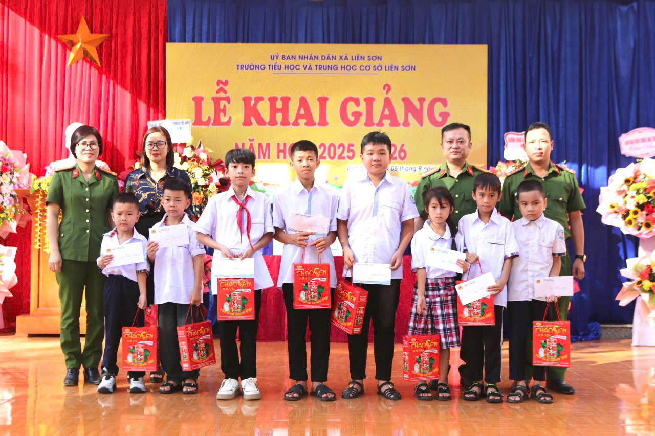Công an xã Liên Sơn tặng quà cho học sinh trẻ em mồ côi, trẻ em có hoàn cảnh khó khăn nhân dịp năm học mới 2025 - 2026