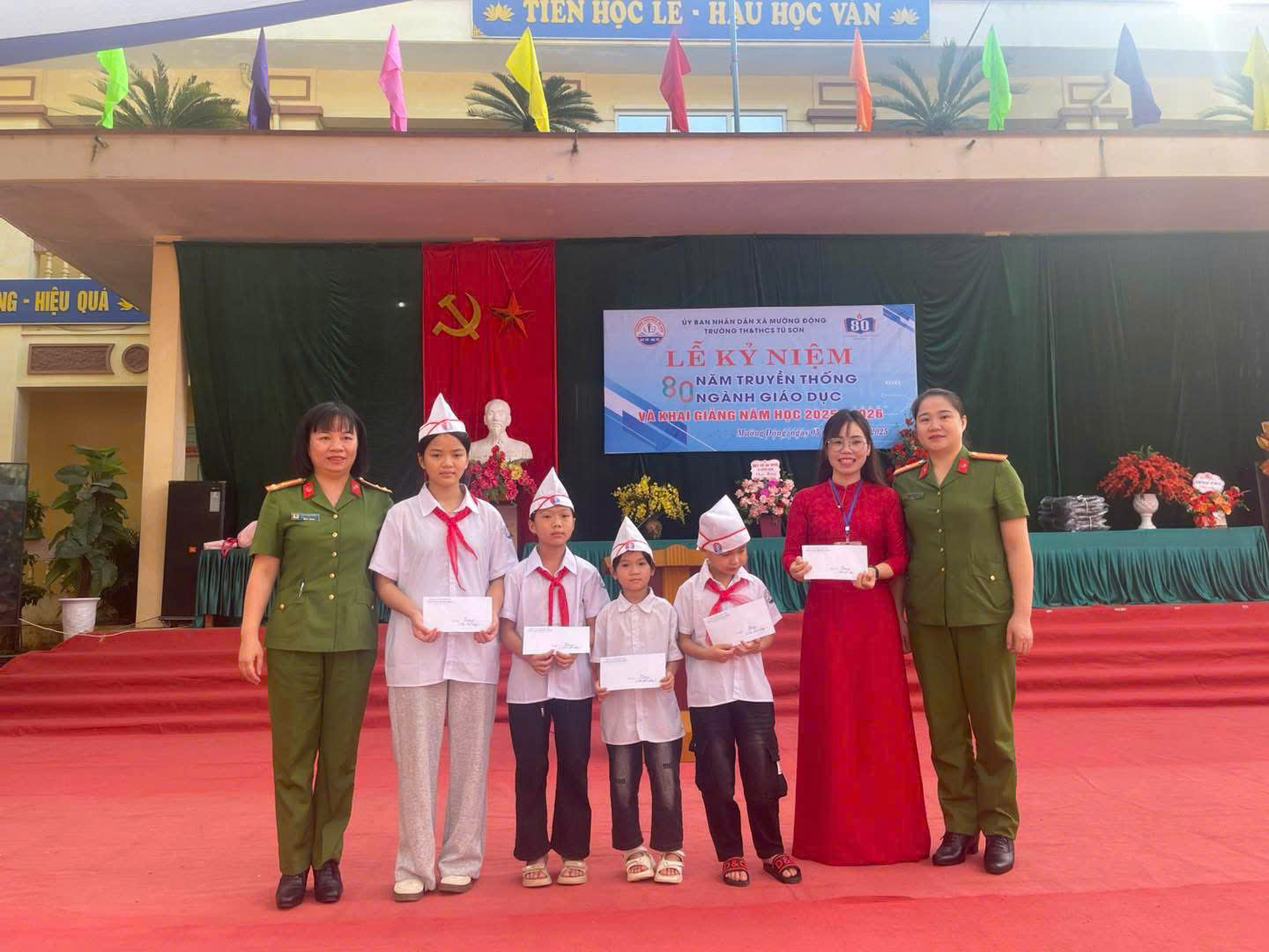 Nhân dịp Khai giảng năm học mới 2025 – 2026, Công an xã Mường Động đã trao 05 suất quà ý nghĩa tới các em học sinh có hoàn cảnh khó khăn tại Trường Tiểu học và THCS Tú Sơn.