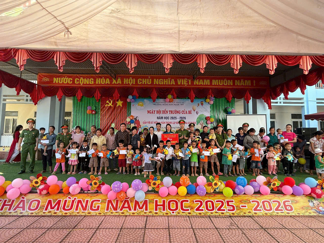 Thực hiện Công văn số 2090/CAT-PX03 của Công an tỉnh Phú Thọ, sáng 05/9/2025, Công an xã Tân Lạc đã phối hợp với các nhà trường trên địa bàn trao tặng 100 suất quà và 7 triệu đồng tiền mặt, tổng trị giá 15 triệu đồng, cho học sinh có hoàn cảnh khó khăn tại Trường Mầm non và Trường Tiểu học & THCS Ngọc Mỹ.