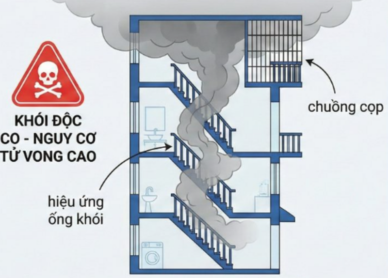 Hiệu ứng ống khói là hiện tượng các khí nóng, khói và sản phẩm cháy di chuyển rất nhanh theo phương thẳng đứng trong các không gian kín hoặc bán kín có dạng trục đứng, hình thành do sự chênh lệch nhiệt độ và áp suất giữa khu vực đang cháy bên trong công trình và môi trường không khí bên ngoài.