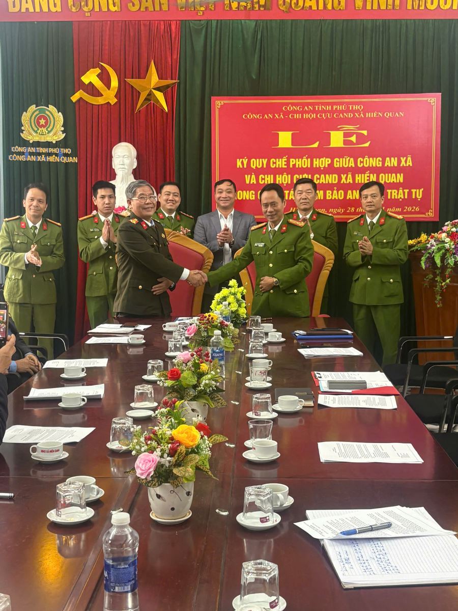 Nhằm phát huy vai trò, trách nhiệm của lực lượng Công an xã và Chi hội Cựu Công an nhân dân trong công tác bảo đảm an ninh, trật tự tại cơ sở, ngày 28/01/2026, Công an xã Hiền Quan đã phối hợp với Chi hội Cựu Công an nhân dân xã Hiền Quan tổ chức Lễ ký Quy chế phối hợp trong công tác bảo đảm an ninh, trật tự trên địa bàn.