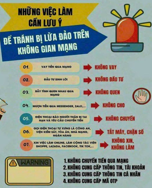 Trong thời gian gần đây, tình trạng lừa đảo chiếm đoạt tài sản qua mạng Internet, điện thoại và mạng xã hội có chiều hướng gia tăng, với nhiều thủ đoạn ngày càng tinh vi, gây thiệt hại lớn về tài sản và ảnh hưởng đến đời sống người dân. Để giúp Nhân dân nhận diện, nâng cao cảnh giác và chủ động phòng tránh, Công an xã Tam Dương Bắc thông tin, cảnh báo 15 thủ đoạn lừa đảo phổ biến mà các đối tượng thường sử dụng.