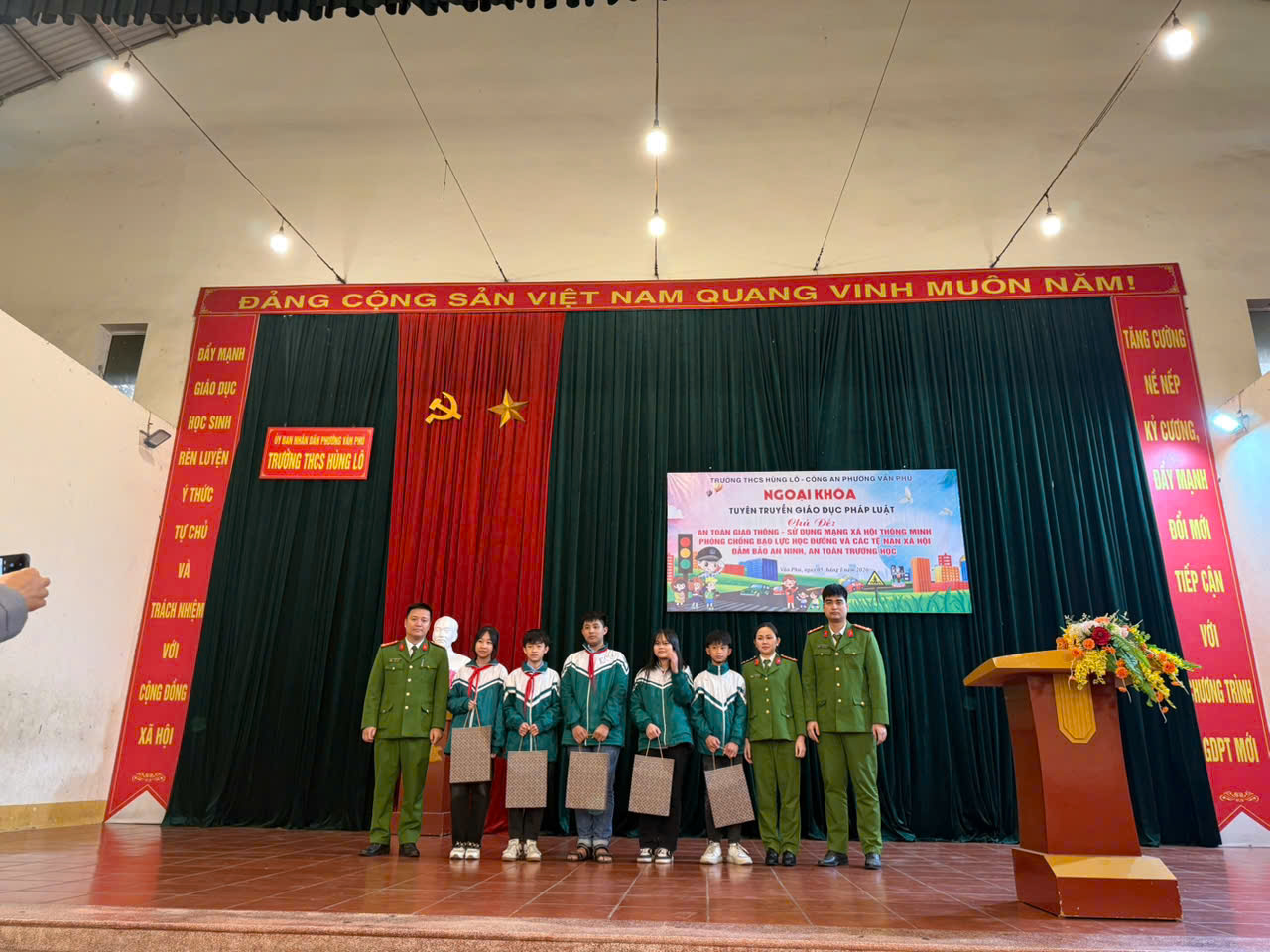 Thực hiện kế hoạch tuyên truyền, phổ biến, giáo dục pháp luật trong học đường, nhằm nâng cao nhận thức và ý thức chấp hành pháp luật cho học sinh, vừa qua, Công an phường Vân Phú đã phối hợp với Trường THCS Hùng Lô tổ chức buổi tuyên truyền, phổ biến pháp luật cho gần 600 cán bộ, giáo viên và học sinh của nhà trường.