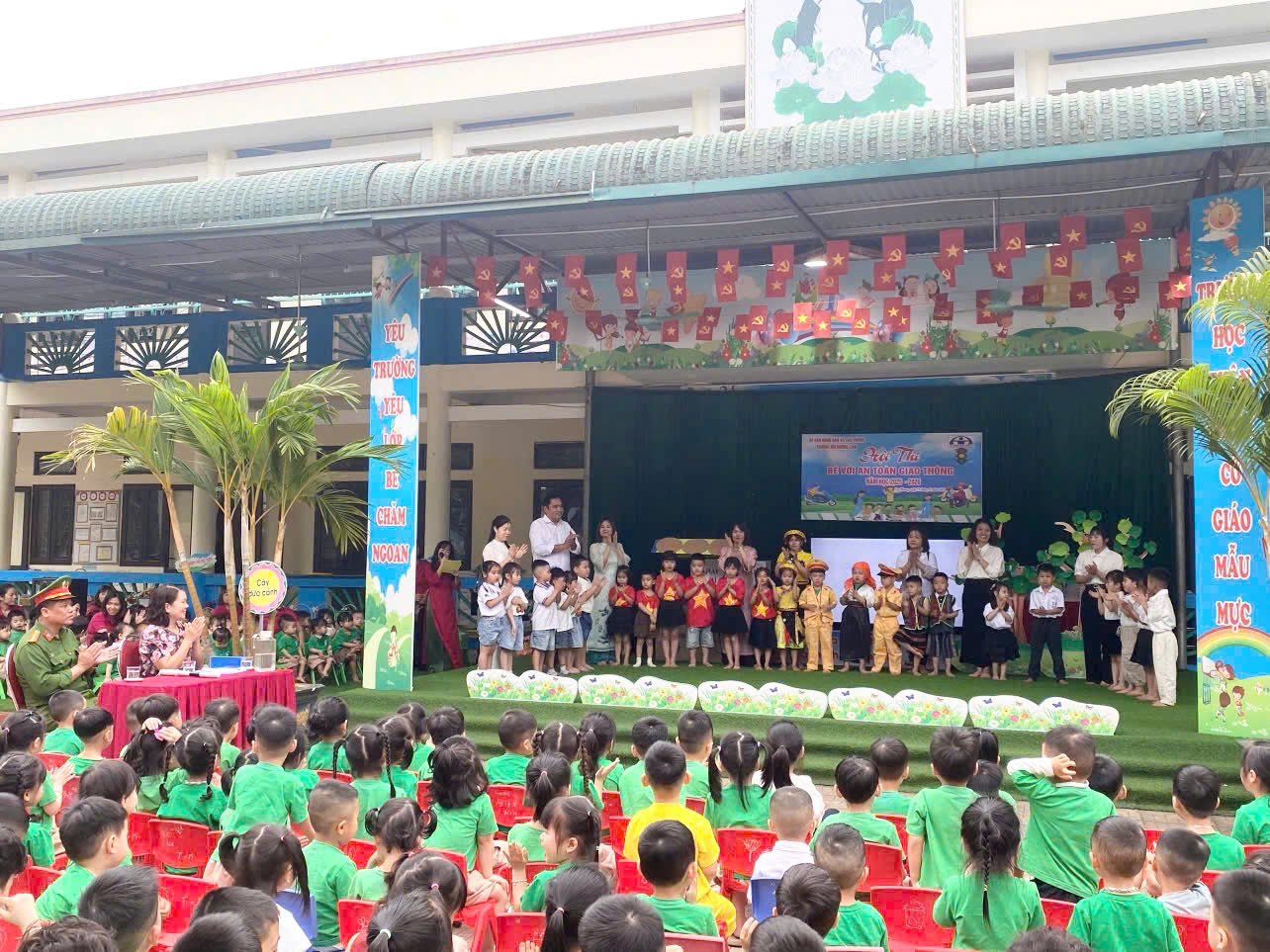 Nhằm góp phần nâng cao ý thức chấp hành pháp luật về trật tự, an toàn giao thông ngay từ lứa tuổi mầm non. Ngày 25/3/2026 Công an xã Cao Phong phối hợp với trường mầm non Hương Cam tổ chức chương trình tuyên truyền pháp luật về trật tự an toàn giao thông với Hội thi “Bé với an toàn giao thông” năm học 2025-2026, với sự tham gia của 34 giáo viên và 220 em học sinh trong nhà trường.