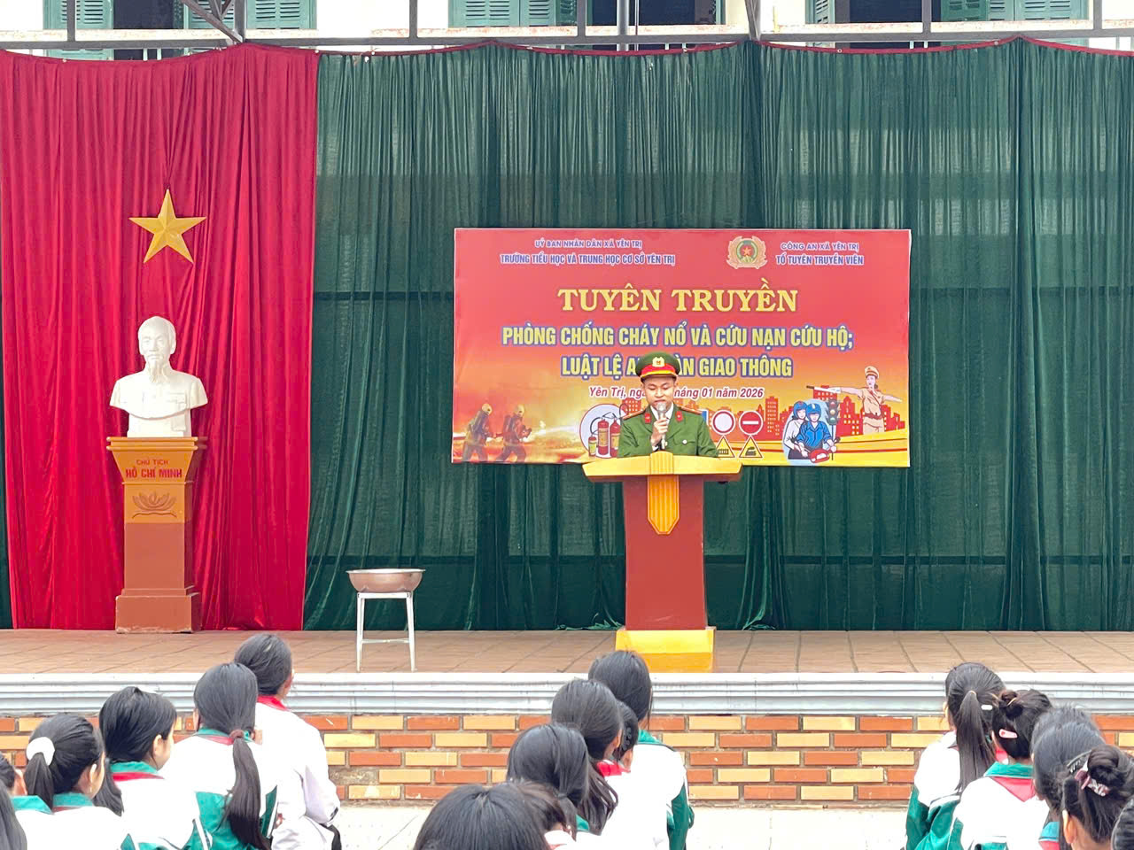 Thực hiện Chương trình công tác năm 2026, ngày 26/01/2026, Công an xã Yên Trị phối hợp với Trường TH&THCS Yên Trị tổ chức buổi tuyên truyền, phổ biến giáo dục pháp luật cho 45 cán bộ, giáo viên và 545 học sinh nhà trường.