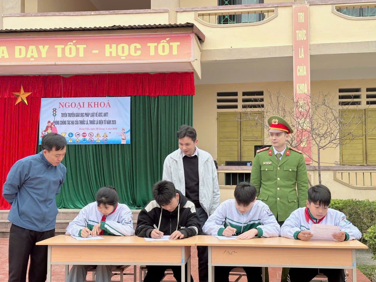 Nhằm nâng cao nhận thức, ý thức chấp hành pháp luật cho học sinh, góp phần xây dựng môi trường học đường an toàn, lành mạnh, sáng ngày 26/01/2026, Công an xã Hùng Việt phối hợp với Trường Trung học cơ sở Chương Xá tổ chức buổi tuyên truyền pháp luật về trật tự, an toàn giao thông đường bộ và phòng, chống tác hại của thuốc lá điện tử.