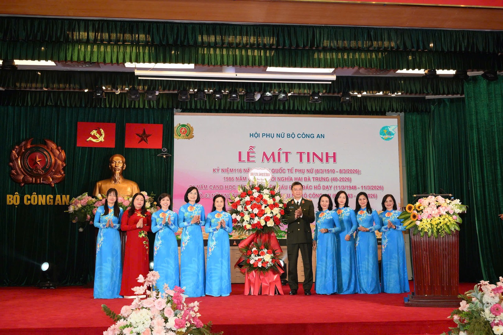Chiều 06/3/2026, tại Hà Nội, Hội Phụ nữ Bộ Công an tổ chức Lễ mít tinh kỷ niệm 116 năm Ngày Quốc tế Phụ nữ (8/3/1910 – 8/3/2026); 1986 năm cuộc khởi nghĩa Hai Bà Trưng (40-2026); 78 năm Công an nhân dân (CAND) học tập, thực hiện Sáu điều Bác Hồ dạy (11/3/1948-11/3/2026) và 43 năm Ngày thành lập Hội Phụ nữ Bộ Công an (8/3/1983 – 8/3/2026). Thiếu tướng Phạm Kim Đĩnh, Cục trưởng Cục Công tác chính trị, Bộ Công an chủ trì buổi lễ.