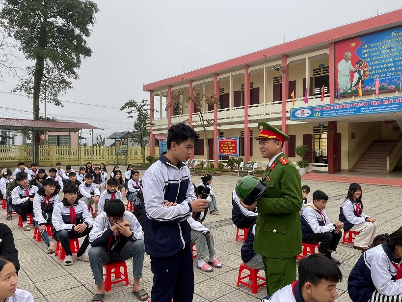 Nhằm nâng cao nhận thức, ý thức chấp hành pháp luật cho học sinh, Công an xã Xuân Đài đã phối hợp với Trường PTDTBT THCS Kim Thượng tổ chức tuyên truyền Luật Trật tự, an toàn giao thông đường bộ và phòng, chống pháo nổ trong thanh thiếu niên.