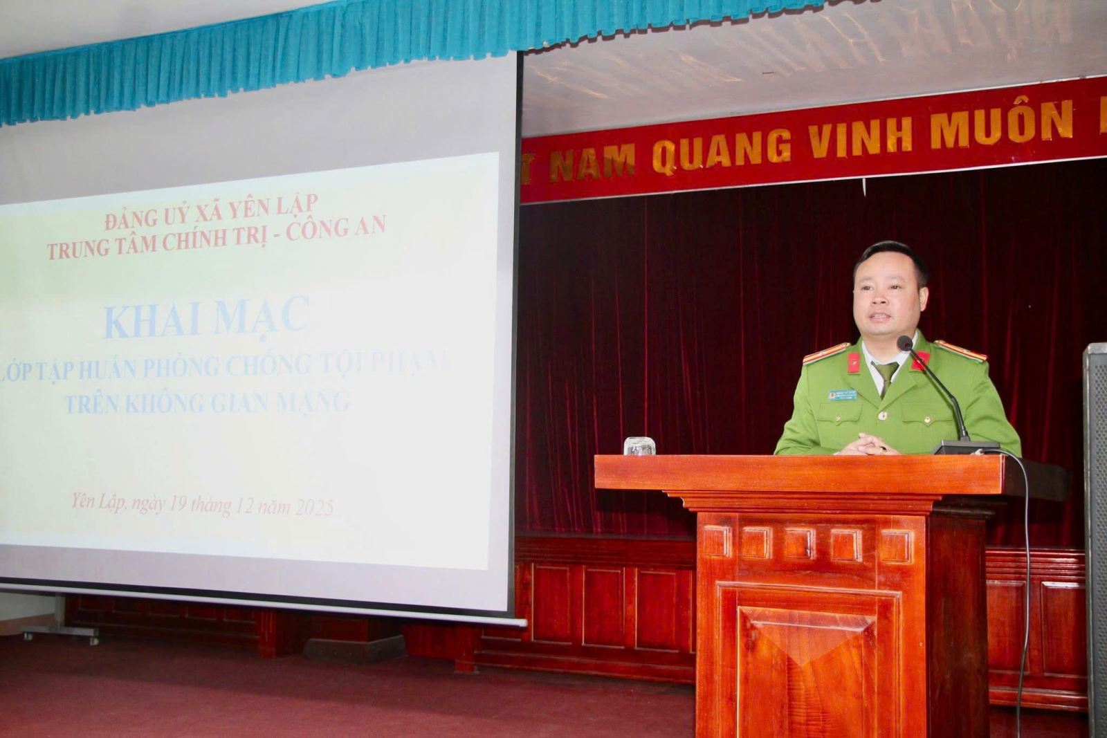Trong bối cảnh công nghệ thông tin và mạng xã hội ngày càng phát triển mạnh mẽ, các loại hình tội phạm trên không gian mạng cũng gia tăng cả về số lượng và mức độ tinh vi, gây ảnh hưởng trực tiếp đến an ninh trật tự, quyền và lợi ích hợp pháp của tổ chức, cá nhân. Nhằm nâng cao nhận thức, trang bị kiến thức và kỹ năng phòng ngừa cho đội ngũ cán bộ cơ sở, ngày 19/12/2025, tại Trung tâm chính trị xã Yên Lập, Công an xã đã phối hợp với Trung tâm Chính trị xã tổ chức lớp tập huấn tuyên truyền, phổ biến pháp luật về phòng, chống tội phạm trên không gian mạng cho các bí thư chi bộ, trưởng khu dân cư và chi hội trưởng phụ nữ trên địa bàn xã.