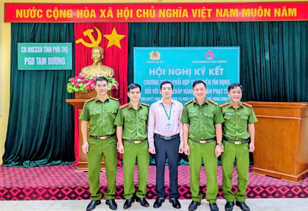 Thực hiện Quyết định số 22/2023/QĐ-TTg ngày 17/8/2023 của Thủ tướng Chính phủ về tín dụng đối với người chấp hành xong án phạt tù và Chương trình phối hợp số 2941/CTPH-CAT-NHCSXH ngày 22/9/2025 giữa Công an tỉnh Phú Thọ và Chi nhánh Ngân hàng Chính sách xã hội (NHCSXH) tỉnh Phú Thọ, ngày 10/11/2025, Phòng giao dịch NHCSXH Tam Dương phối hợp với Công an các xã Tam Dương, Tam Dương Bắc, Hoàng An và Hội Thịnh tổ chức Hội nghị ký kết Chương trình phối hợp thực hiện Quyết định số 22/2023/QĐ-TTg giai đoạn 2025–2028.