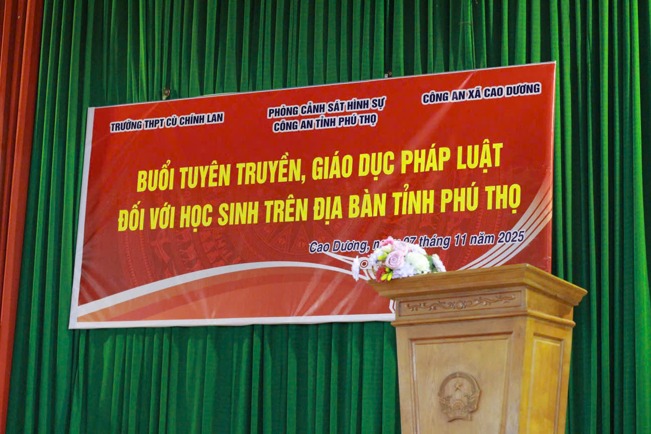 Nhằm nâng cao ý thức chấp hành pháp luật và kỷ luật, đồng thời xây dựng lối sống lành mạnh trong lứa tuổi học sinh, sáng ngày 07/11/2025, Công an xã Cao Dương phối hợp với Phòng Cảnh sát hình sự Công an tỉnh Phú Thọ tổ chức buổi tuyên truyền, giáo dục pháp luật tại trường THPT Cù Chính Lan. Buổi tuyên truyền có sự tham gia của khoảng 800 học sinh cùng cán bộ, giáo viên nhà trường.