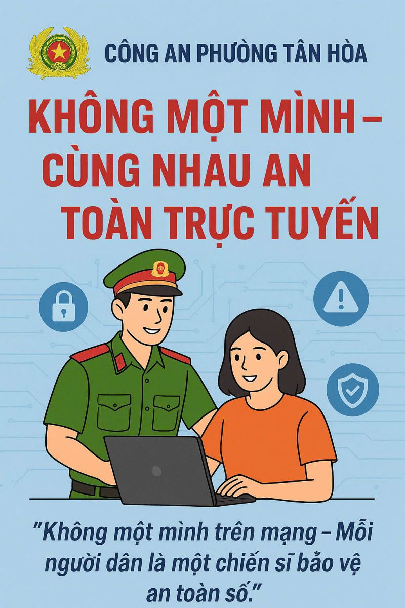 Trước thực trạng tội phạm công nghệ cao, lừa đảo qua mạng, giả mạo tài khoản và chiếm đoạt thông tin cá nhân ngày càng diễn biến phức tạp, ảnh hưởng trực tiếp đến đời sống người dân, Công an phường Tân Hòa đã chủ động triển khai chiến dịch tuyên truyền “Không một mình – Cùng nhau an toàn trực tuyến”. Hoạt động nhằm nâng cao nhận thức, kỹ năng bảo vệ bản thân của người dân trong không gian mạng, góp phần phòng ngừa, ngăn chặn các hành vi vi phạm pháp luật liên quan đến công nghệ thông tin.