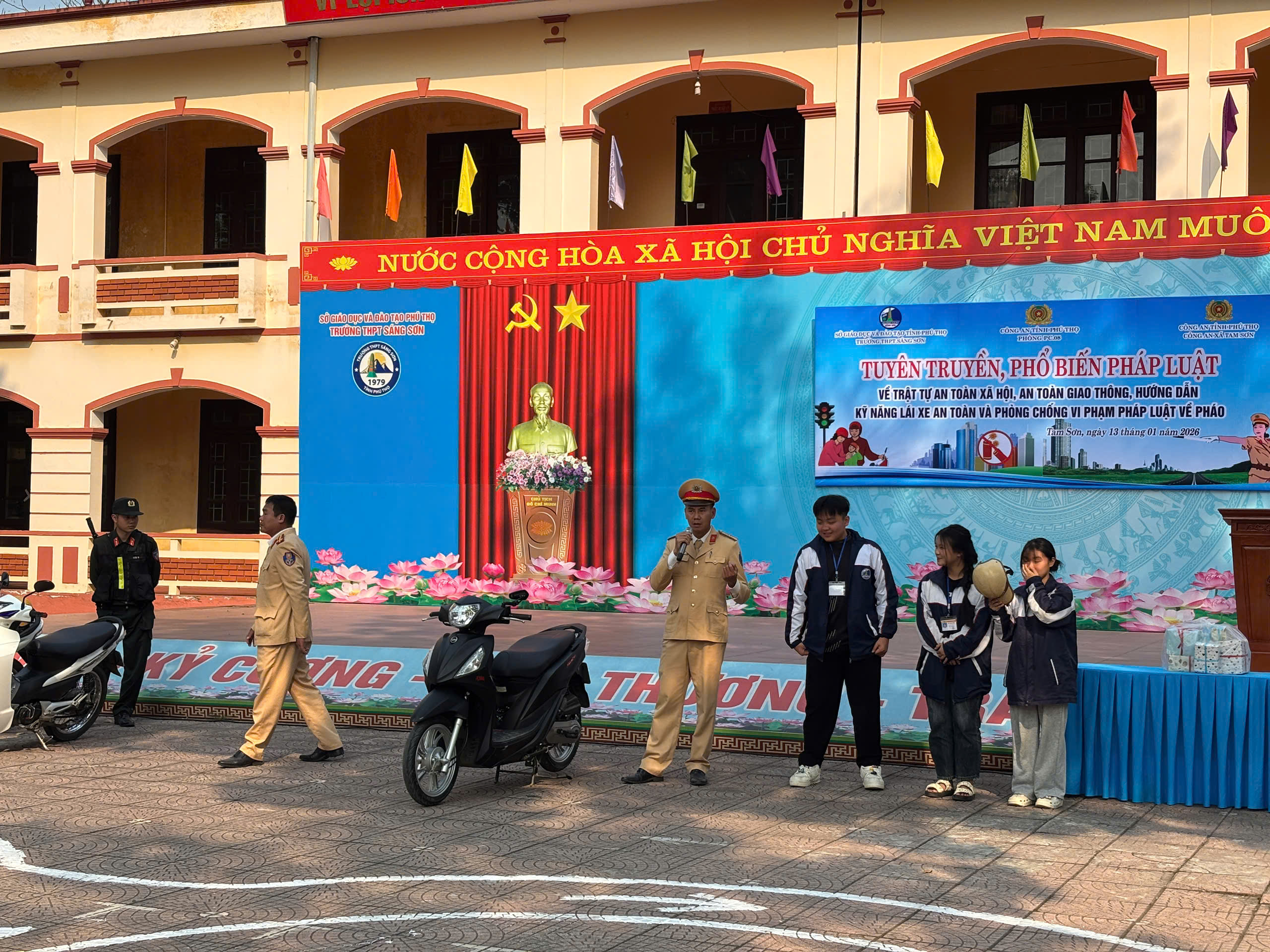 Nhằm nâng cao nhận thức pháp luật và ý thức chấp hành các quy định về trật tự, an toàn xã hội, an toàn giao thông trong lứa tuổi học sinh, thời gian qua, Công an xã Tam Sơn đã phối hợp với Phòng Cảnh sát giao thông Công an tỉnh Phú Thọ tổ chức buổi tuyên truyền, phổ biến pháp luật và hướng dẫn kỹ năng lái xe an toàn tại Trường Trung học phổ thông Sáng Sơn.