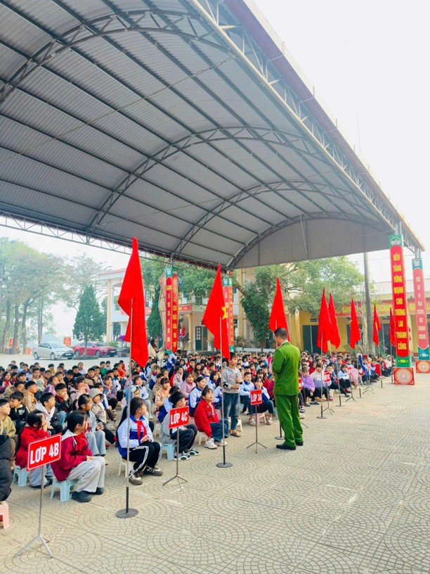 Nhằm nâng cao nhận thức pháp luật, kỹ năng phòng ngừa các hành vi vi phạm và kỹ năng tự bảo vệ bản thân cho học sinh, sáng ngày 12/01/2026, Công an xã Tề Lỗ đã phối hợp với Ban Giám hiệu Trường Tiểu học Trung Nguyên tổ chức chương trình tuyên truyền phòng, chống bạo lực học đường và trang bị kỹ năng tự bảo vệ cho học sinh.