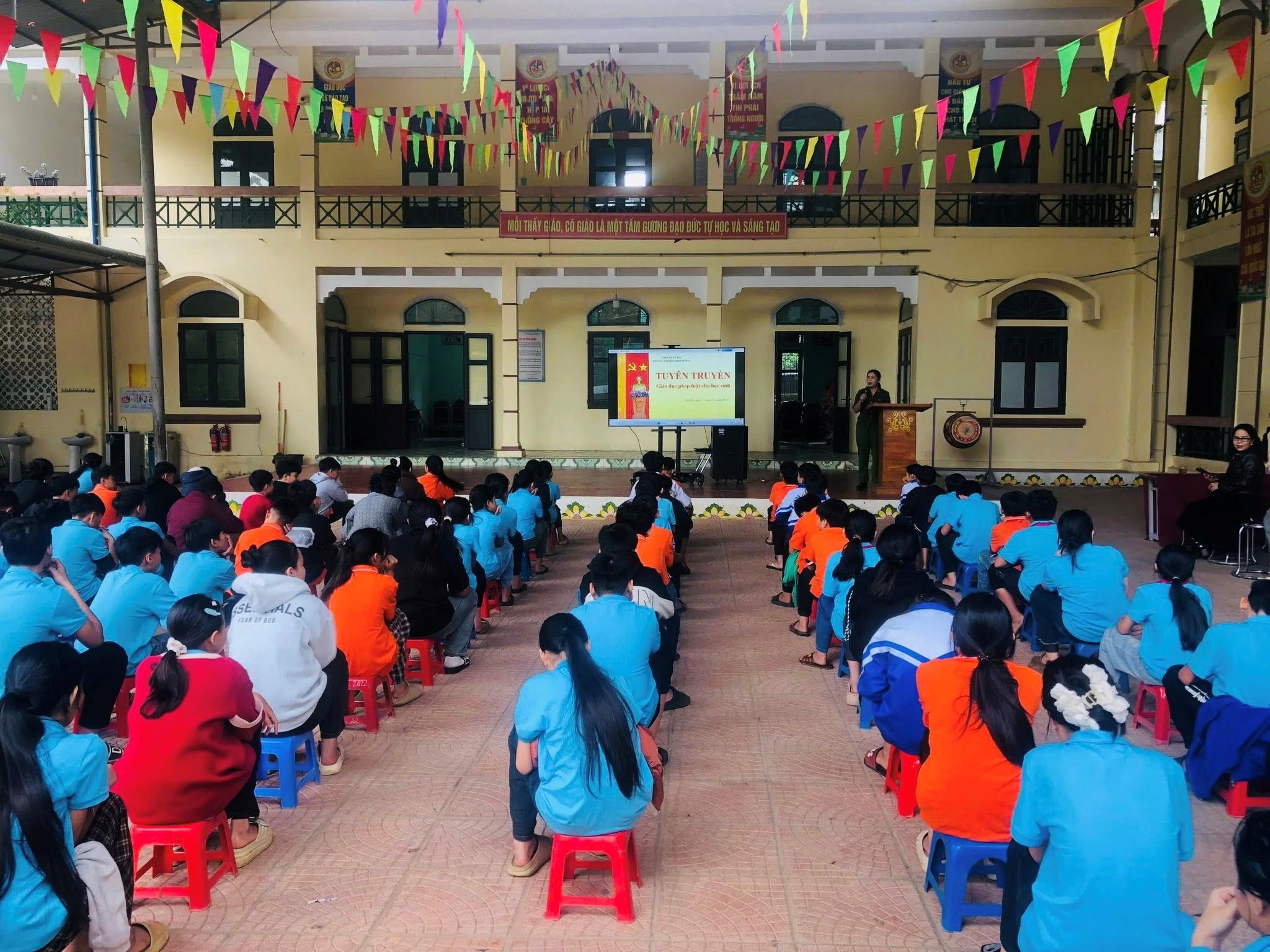 Nhằm nâng cao nhận thức, ý thức chấp hành pháp luật và hình thành lối sống lành mạnh cho học sinh. Ngày 07/11/2025, Công an xã Đà Bắc đã phối hợp với Trường Tiểu học và Trung học cơ sở Hiền Lương tổ chức buổi tuyên truyền, giáo dục pháp luật cho toàn thể học sinh và cán bộ, giáo viên Nhà trường.